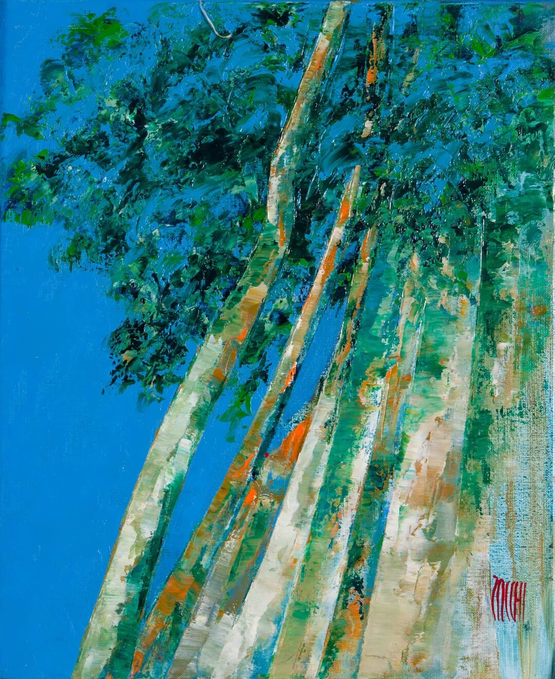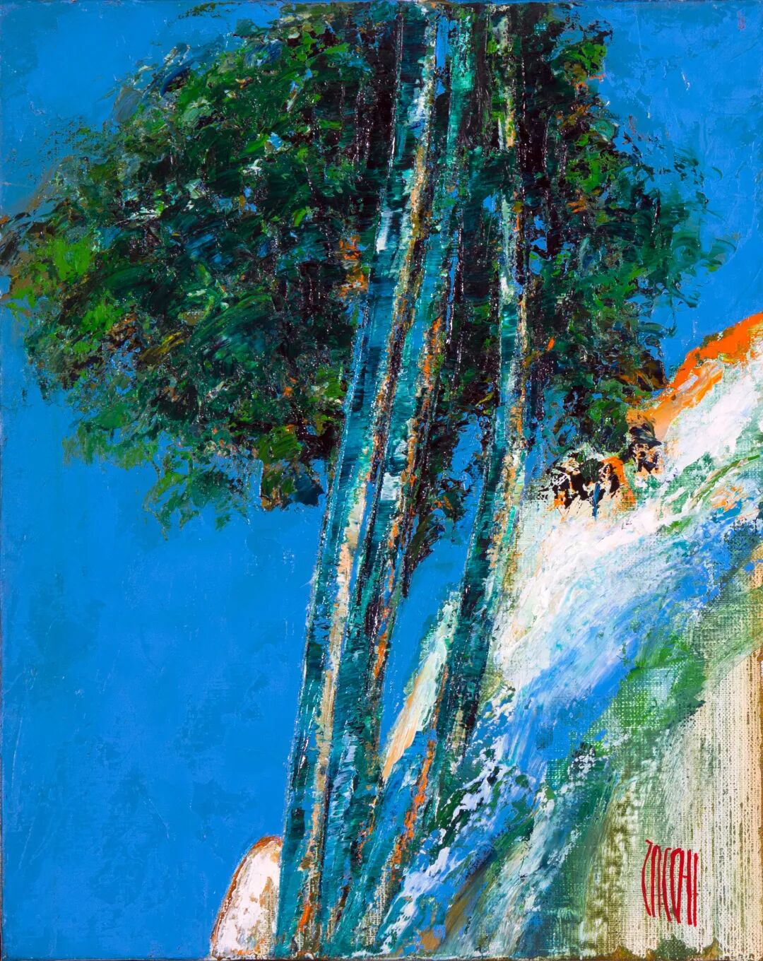 从自然界中汲取色彩的丰富性,是许多参展艺术家们共同的选择。他们走进平原、山坡、海岸及异域之境寻求灵感。扎基用高饱和的蓝色基调描绘树木风姿,具象的刻画中渗透出梦幻氛围。同样以生物作为题材,拉赫优则用热烈而温暖的色调在画布上表达张力与情感,让人不禁想起儿时万花筒里的奇妙景象。画家也以此传递其对于人文及环保理念的愿景。坦吉的地中海系列兼具冷暖色调的平衡,和根深于法兰西传统的印象主义一脉相承。