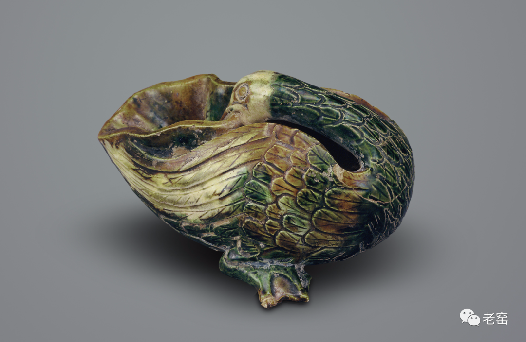 鸡冠壶,辽代特有的陶瓷器型。亦称“马镫壶”、“皮囊壶”。是模仿契丹族皮囊容器的样式而烧制的陶或瓷壶。壶上部有鸡冠状孔鼻,故名。式样大体可分五种:扁身单孔式、扁身双孔式、扁身环梁式、圆身环梁式、矮身横梁式。其年代早晚,通常以壶身所保留的皮囊容器特点的多少来区分。