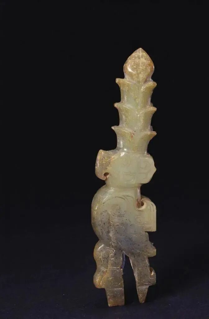 商代 玉高冠鸟柄形器 故宫博物院藏