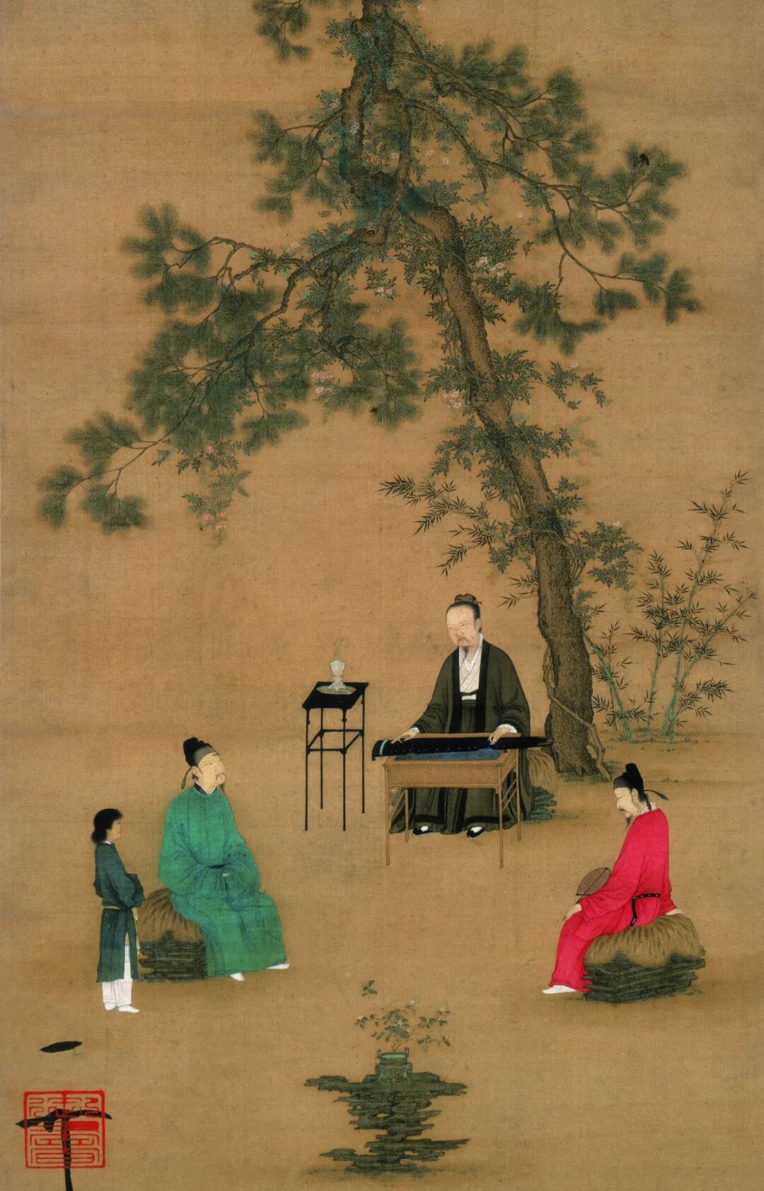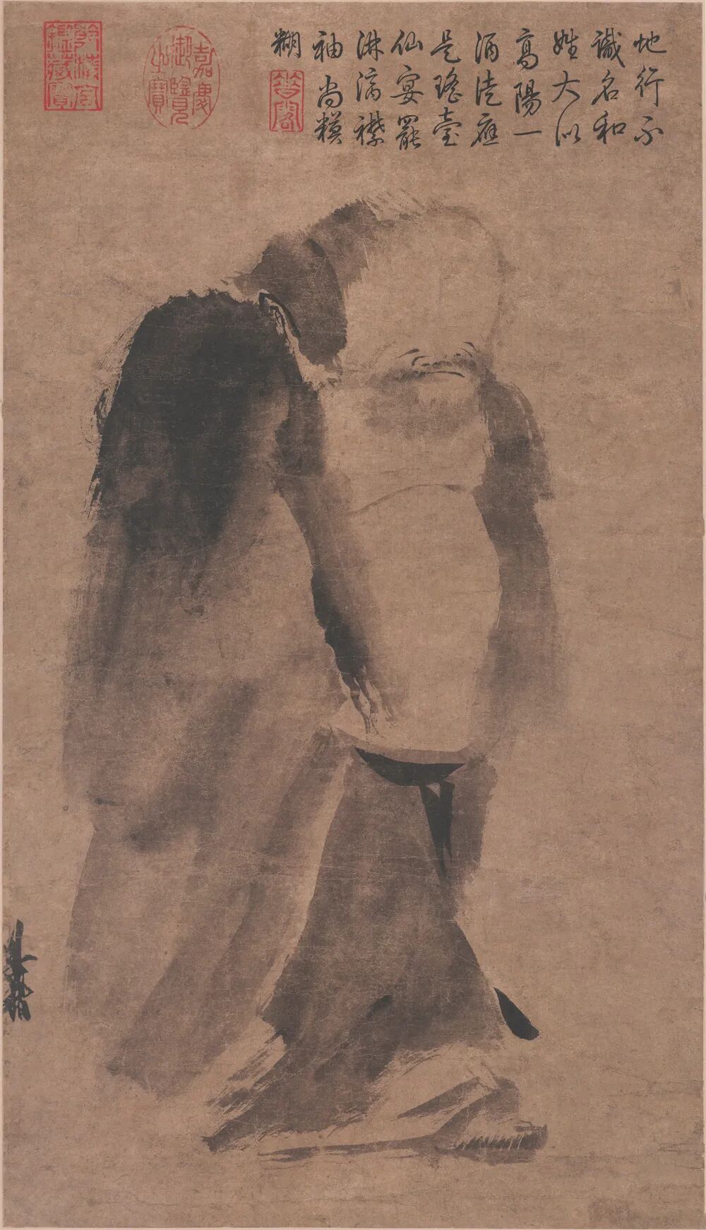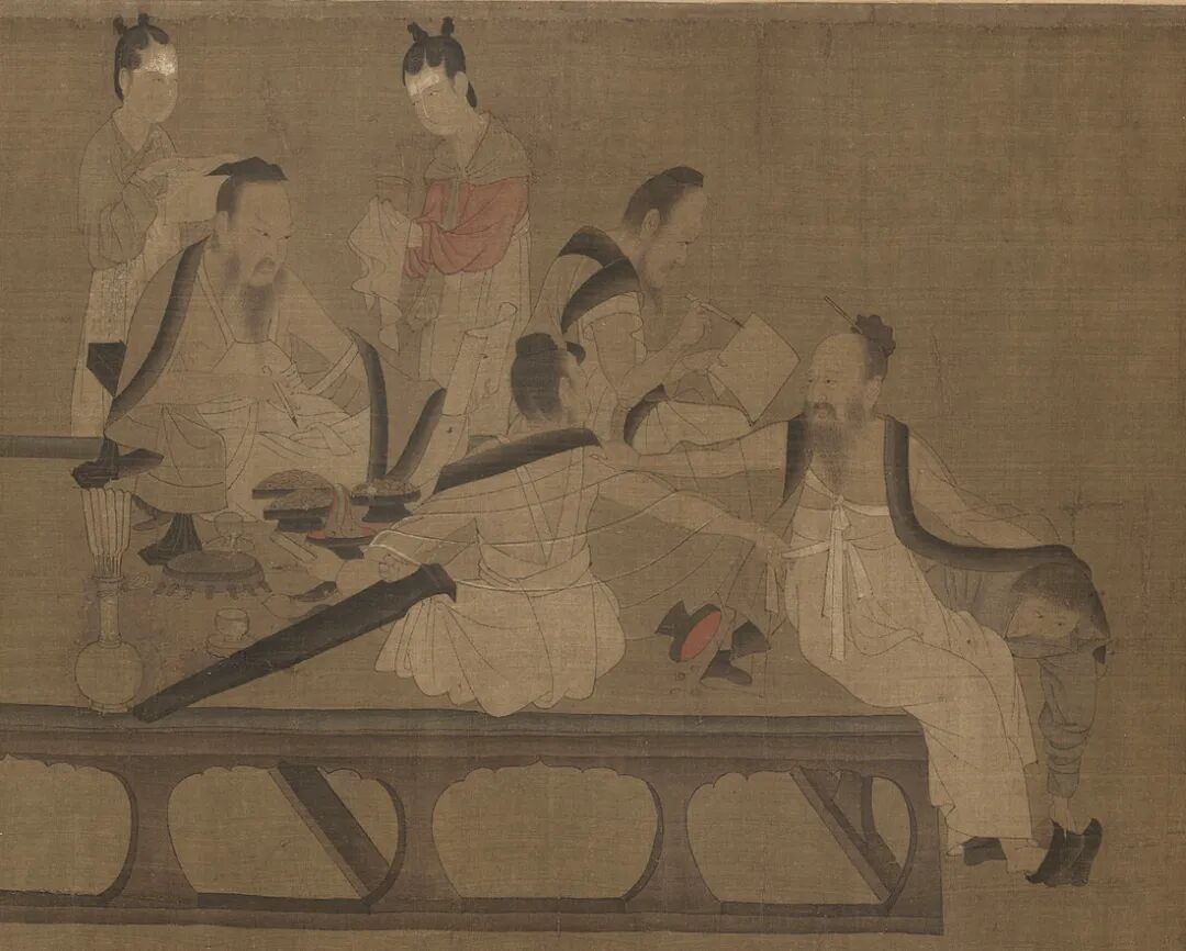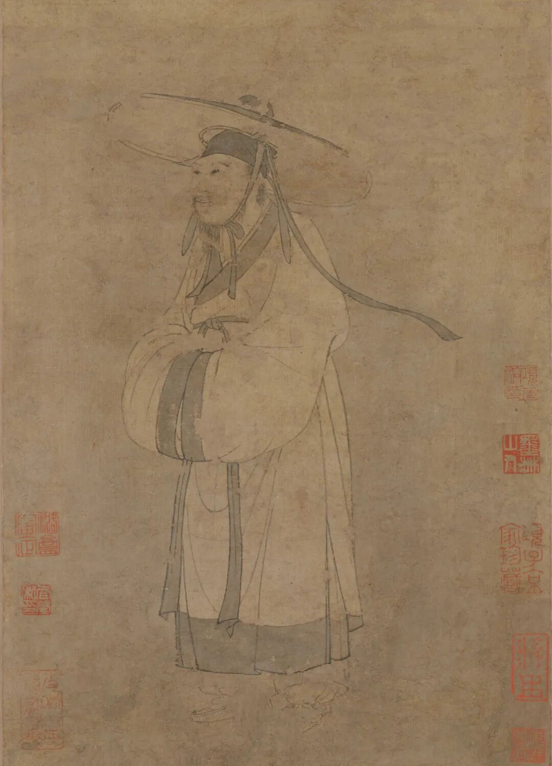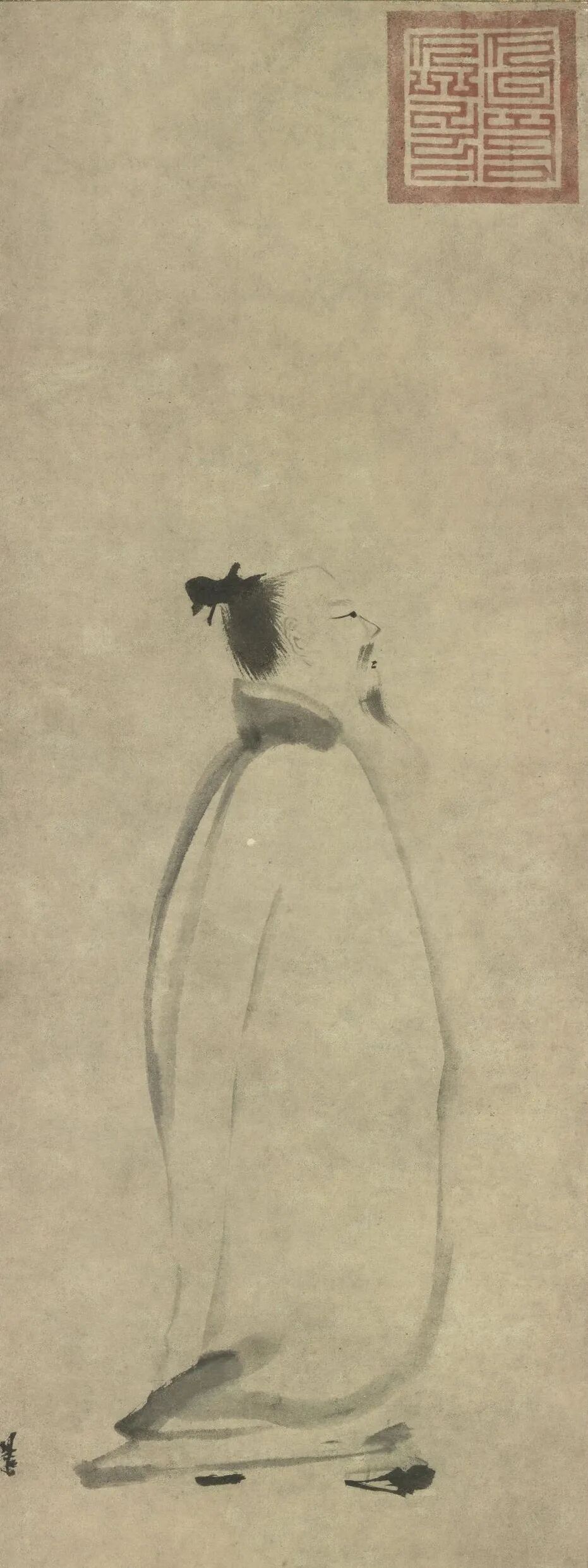 近日,一则自称“高质量男性”求偶的视频火爆网络。炫富的穿搭、半蹲的站姿、拗口的发音、油腻的头型和阴间的妆容,显得诡异又可笑。所谓“高质量男性”,古人与今人的概念似乎并不相同。古画中的“高质量男性”都长什么样?我们不妨见识一下。通过笔墨的描绘衣带,而并非执着于人体比例的完美,使理想中国男人获得了一种完全不同于西方肌肉健硕的美男子的形象。而轮廓柔和慈眉善目、高贵富态威风凛凛,或者瘦小精干骨骼清奇,都表达着了一个个鲜活的精神内涵。他们洒脱飘逸,飘然出世,或者悲天悯人,吐纳天下。魏晋风度流行时,褒衣博带、袒胸露臂的闲逸高士奠定了男性肖像画的审美主流;即便是正襟危坐、衣冠楚楚,飘逸的衣褶也透露出随性散漫的处事态度。精神上追求天人合一,人体与天地通达,神情自然从容不迫。因而,在人物上表达紧张感则仿佛成了一种忌讳。在中国绘画最高峰的宋元时期,诞生了描绘不少传神的“高质量”男性的画作。在宋徽宗赵佶和宫廷画师的笔下,“高质量”男性继承了魏晋风骨。其画作中的男性闲逸、淡泊,仿佛即便高官厚爵,也安享诗酒田园之乐,而不醉心于功名利禄。比如在《听琴图》中,宋徽宗被描绘成专注抚弄琴弦的形象,他的三个听众凝神静听,陶醉在乐音之中,唯有高松修竹、清供暗香相伴。宫廷画笔下“物质上高质量”的男性,虽然清雅,但并不如精神上的“高质量男性”则更为古人推崇。牧溪笔下的老子,巨口宽鼻,气脉喷薄。气,是吐纳天地的真气,贯通生命的元气,也是“万物负阴而抱阳,冲气以为和”的“宇宙之气”。老子的宇宙生成论,将气作为其载体和象征,以生万物。达摩的眼睛有神而不用,直照入心。达摩面壁九年,透过色尘入正定,双眼空明,内心沉静。正是:行也安然,坐也安然,穷也安然,富也安然。宠辱不惊,看庭前花开花落;去留无意,望天空云卷云舒。南宋高峰原妙禅师,双唇微开,欲言又止,嘴角下垂,胡须上挑,显得既沉着笃定,又将信将疑。正如他提出“疑以信为体,悟以疑为用”的禅宗观点。表情也辩证地阐释着信念和质疑的关系。这是“天生我材必有用”的李白,昂首挺胸清高孤傲,白袍素裹,仙风道骨。他衣袖飘飘,玉树临风,行游天地,才情浪漫。画中的李白边走边吟,极目远望的,或许正是“众鸟高飞尽,孤云独去闲”。这是“会当凌绝顶,一览众山小”的杜甫,斗笠伴他一生风雨,巾带心系天下苍生。矗立的双脚扎根大地,本性悲天悯人。敦实的身体宅心仁厚,一生忧国忧民。比如这幅《泼墨仙人》,鄙夷不屑的表情,便是对凡尘俗世的解脱和超越。到了明清时期,古画中的“高质量”男性依然以随性淡然、潇洒飘逸的形象为第一要旨。即便是君临天下的帝王,也都愿意被描绘成穿着最质朴的布衣蓑帽,农耕渔猎,回归自然。今人对求偶男性的要求或许是有车有房、学历收入这些物质高度,而中国古人意趣中的“高质量男性”则恰好相对,只追求丰富充盈“高质量”的精神世界。诚然,或许舒适享乐的一生能让很多人羡慕,但深邃动人的哲思、无与伦比的才情、悲天悯人的心怀和千古流芳的美名,才更能达到永生的境界。