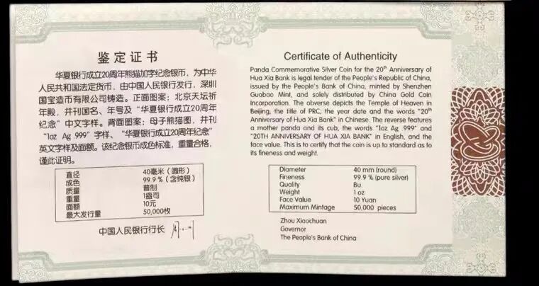各位藏友们,今天我们给大家带来两枚少见的熊猫加字币!华夏银行成立20周年熊猫加字币,以及上海银行成立20周年熊猫加字币!