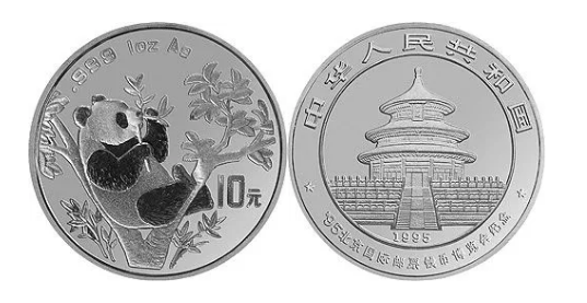 而这两枚币的发行量也很少,今天价格实惠,只有发行价的一半!大家一定别犹豫,数量不多,好品相且题材少见的加字猫,非常值得入手!所谓熊猫加字币,是为了纪念某个重大事件,在当年发行的熊猫(普制)金银币图案的基础上,加上该事件的关键字,算是熊猫币大家庭中的个性化品种。熊猫加字币拥有纪念主题,有自己独立的鉴定证书和包装盒,我们可以理解它为熊猫币中的特别定制品种。我国第一枚熊猫加字币,是1995年发行的“北京国际邮票钱币博览会”熊猫加字银币。![]()