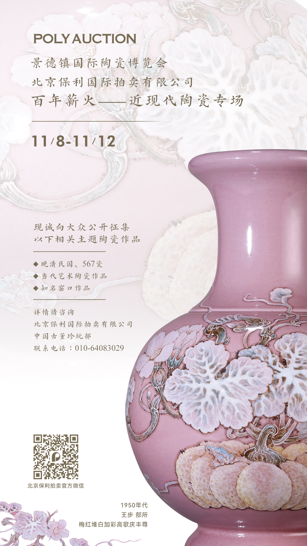 金秋九月,景德镇市人民政府与北京保利国际拍卖有限公司达成合作,将于11月8日-12日景德镇国际陶瓷博览会期间举办陶瓷专场拍卖会。