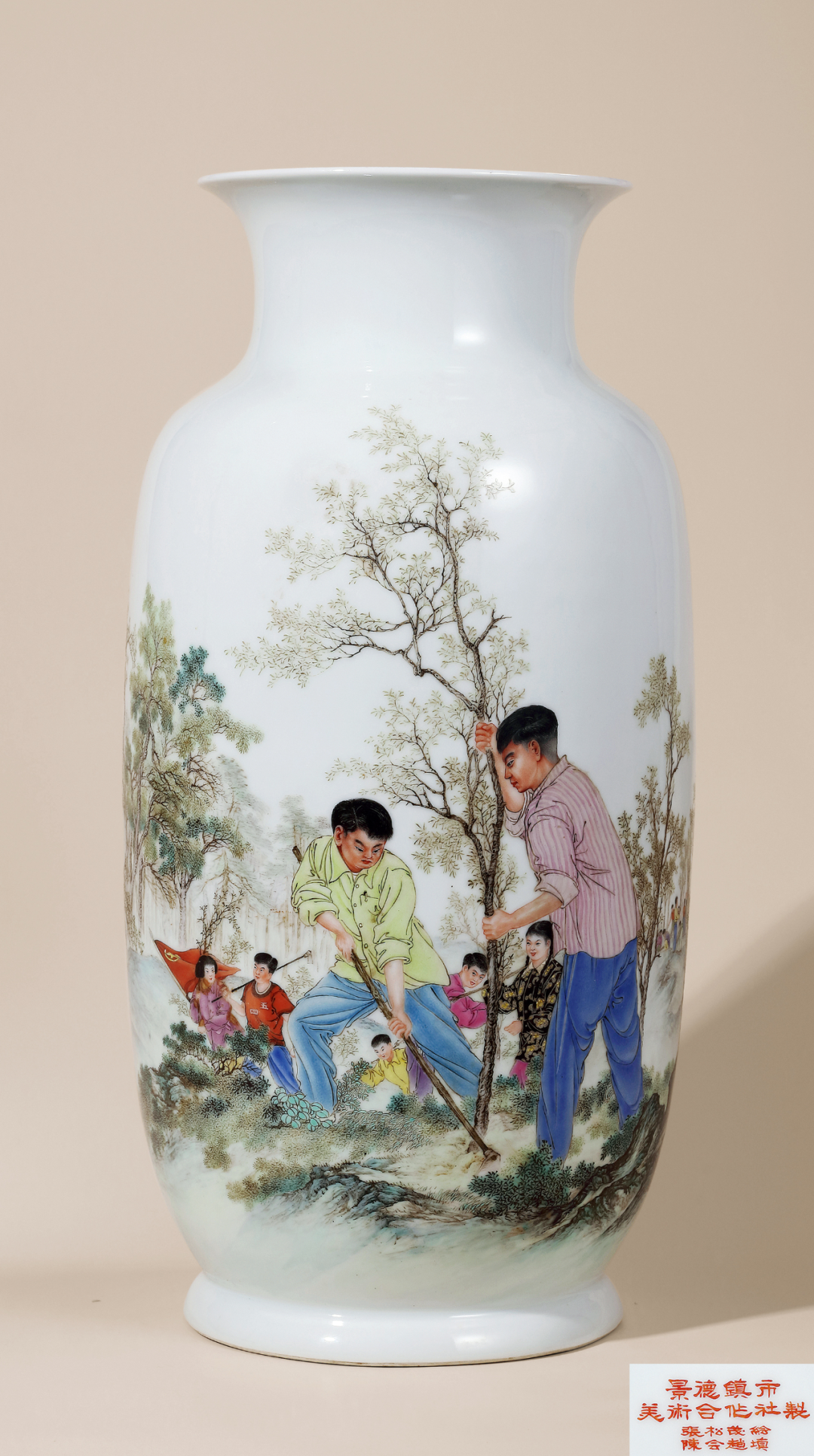 1950年代 张松茂 粉彩青年造林瓶
