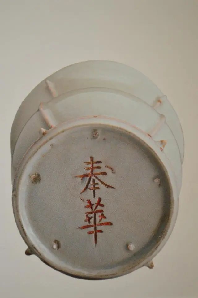 五、宋代汝窑瓷器鉴定特征:纹饰 在宋代汝窑瓷器传世品的个别器物上还出现有文字。如:“奉华”二字多见于尊、瓶、碟之上。“蔡丙”、“宁”则是见于小碟与洗上。文字虽不是装饰,但仍提高了对器物的鉴赏意趣,其中“奉华”应是宋奉华宫的专用物。 器形又分裹足、平底、三足、凹足、葵口、窄板沿和宽板沿诸种。盘分有裹足、凹足、平底、直口和荷花口数种。还有三足洗、弦纹尊(奁)、套盒、尊、方壶、圆壶等,还有为数不多的莲花器座、荷叶器座、镂孔器、鸟、龙等瓷塑工艺品。也用花、鸟、虫、鱼装饰来满足皇亲贵族们的闲情逸趣。