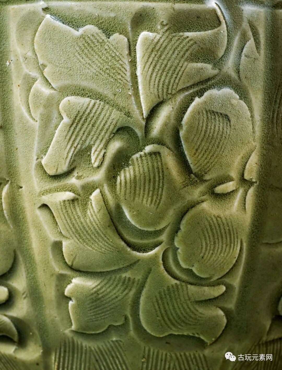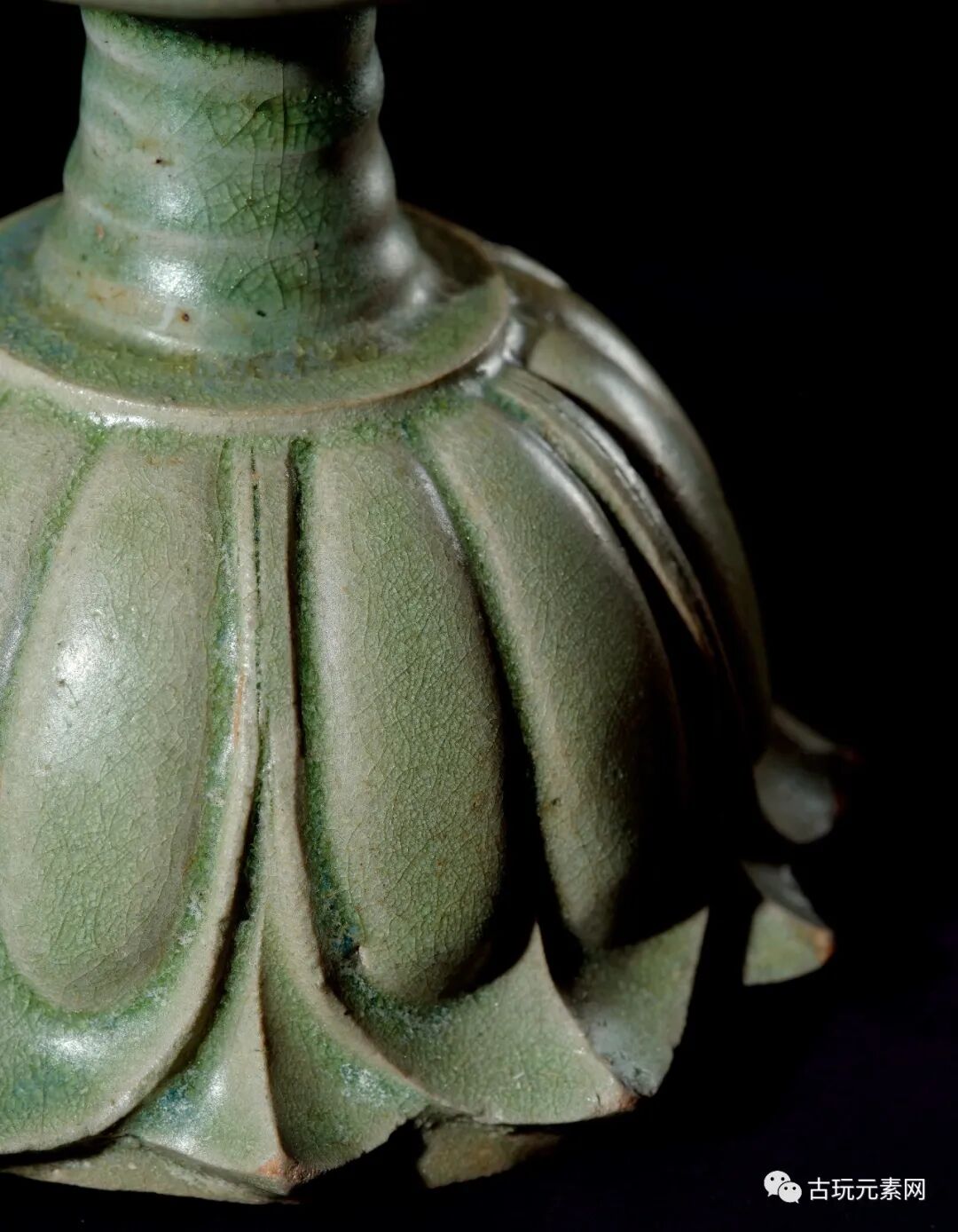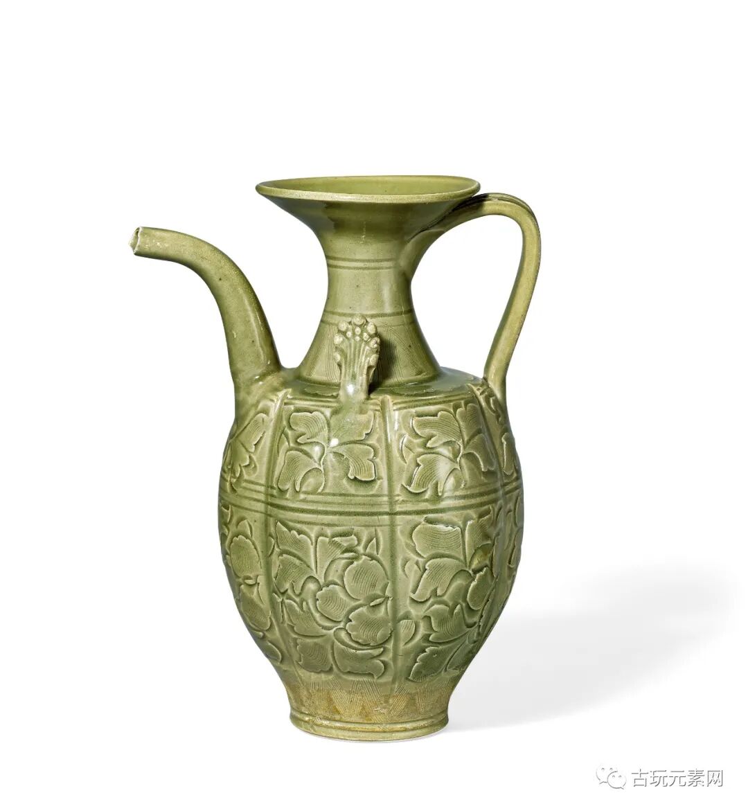耀州窑青釉剔刻花卉纹瓜稜形执壶