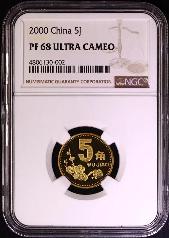 上面那枚卖了1万多元的梅花5角硬币,正是限量发行的2000年精制梅花5角硬币。