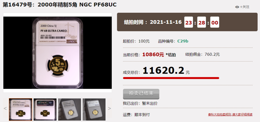 而2000年精制梅花5角硬币的成交价则是11620.2元,足足贵了将近1倍!