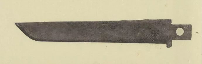 四孔玉刀,新石器时代,齐家文化。长43.4厘米。大阪上野精一藏。
