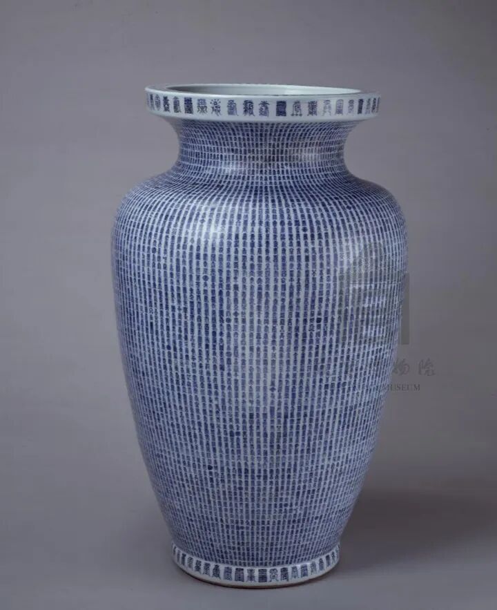 明万历青花“寿”字大罐和清康熙青花万“寿”字大尊,景德镇烧制,“寿”字从明代时的一百个增加到了一万个。(图源:故宫博物院)