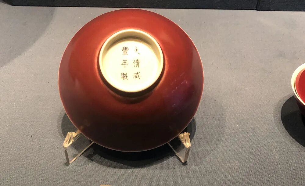 清咸丰霁红釉瓷碗。与宋代相比,清代烧制各种颜色釉已轻而易举,但瓷器的艺术价值并不简单依据制瓷工艺又或年代而定。(成都博物馆展品)