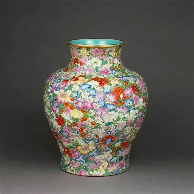 法国吉美博物馆藏清乾隆粉彩“万花不露地”瓶,瓷器上不留一点白。(图源:Guimet Museum)