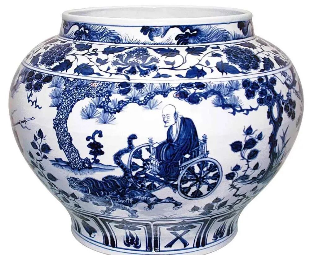 元青花“鬼谷下山”大罐。2005年7月于伦敦拍卖时创下2.3亿人民币的纪录,依当日牌价可买两吨黄金。(图源:佳士得)