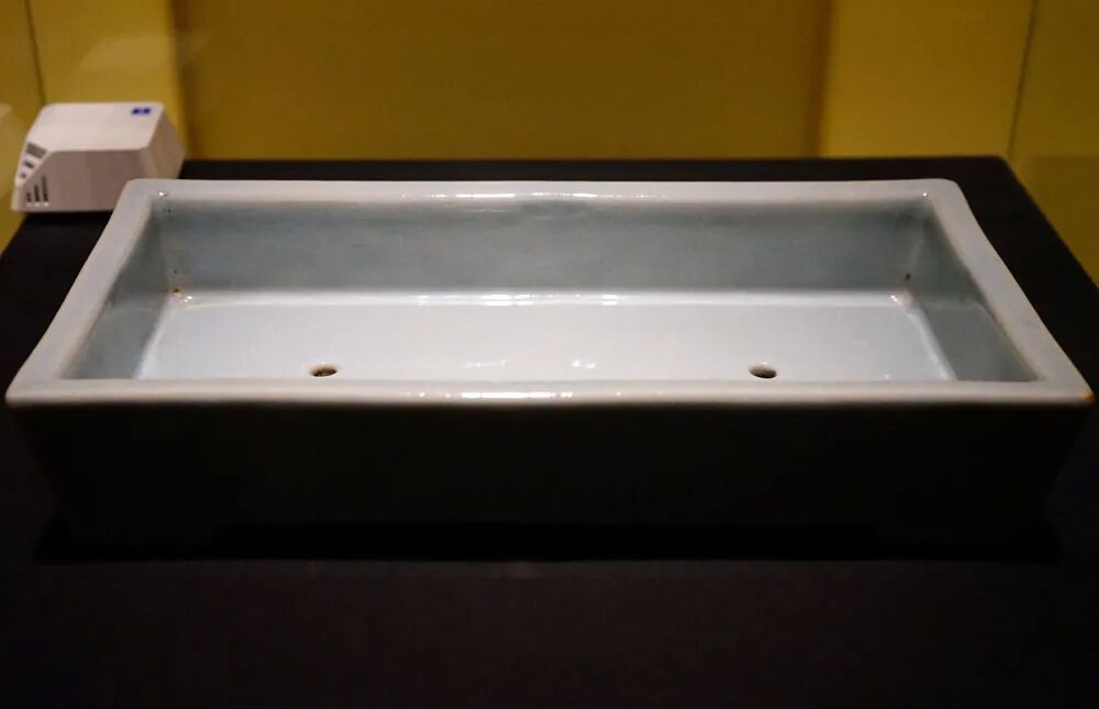 清雍正仿汝釉长方花盆。雍正时的仿宋瓷器,已属宋代以后仿宋瓷器中的精品。(“空明流光”展品)