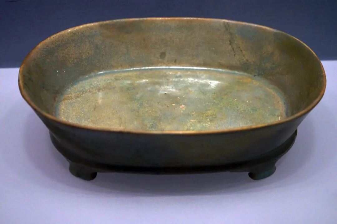 汝窑天青釉椭圆形水仙盆,世存的第七件汝窑水仙盆。(“空明流光”展品)