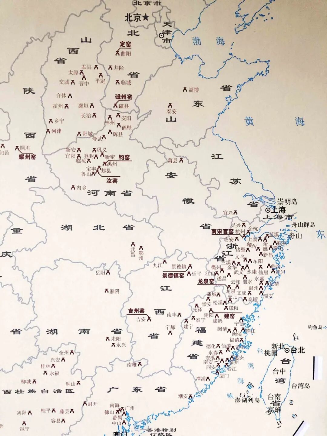 宋代著名的民窑以长江为界,北方是定窑、钧窑、磁州窑和耀州窑,南方是饶州窑、龙泉窑、建窑和吉州窑。