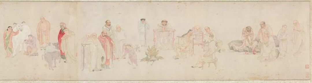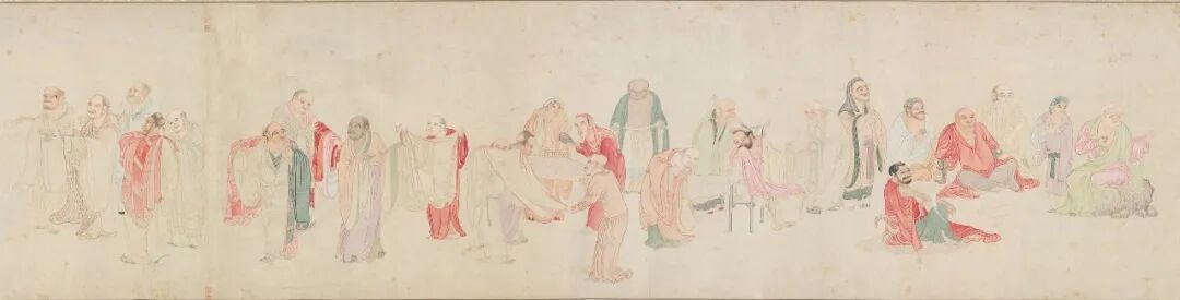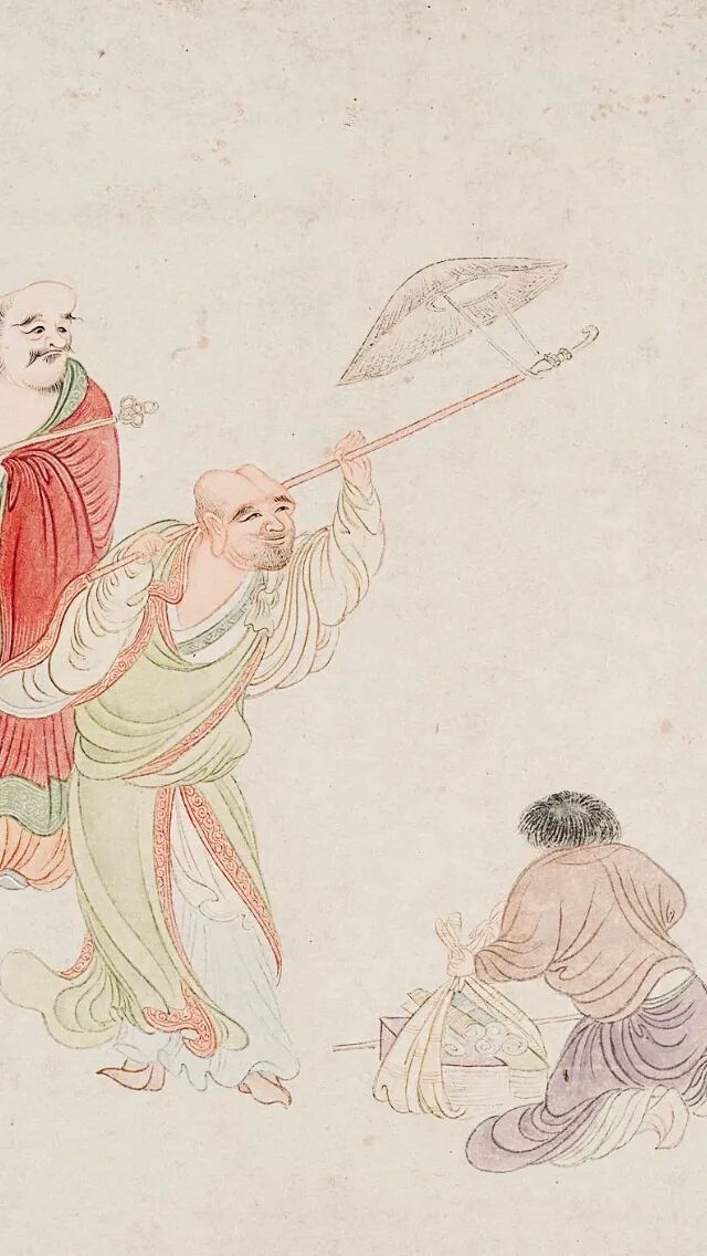 吴彬的罗汉不但具有非常高的观赏价值,而且对弘扬佛法产生了助推作用。吴彬的过人之处更在于其人物个体的形态服从于群体造型以及宗教大画面的能力。他的画除了让人们玩味不已之外,还将人们的视线导入那清净无华、神秘平淡的永恒世界里。