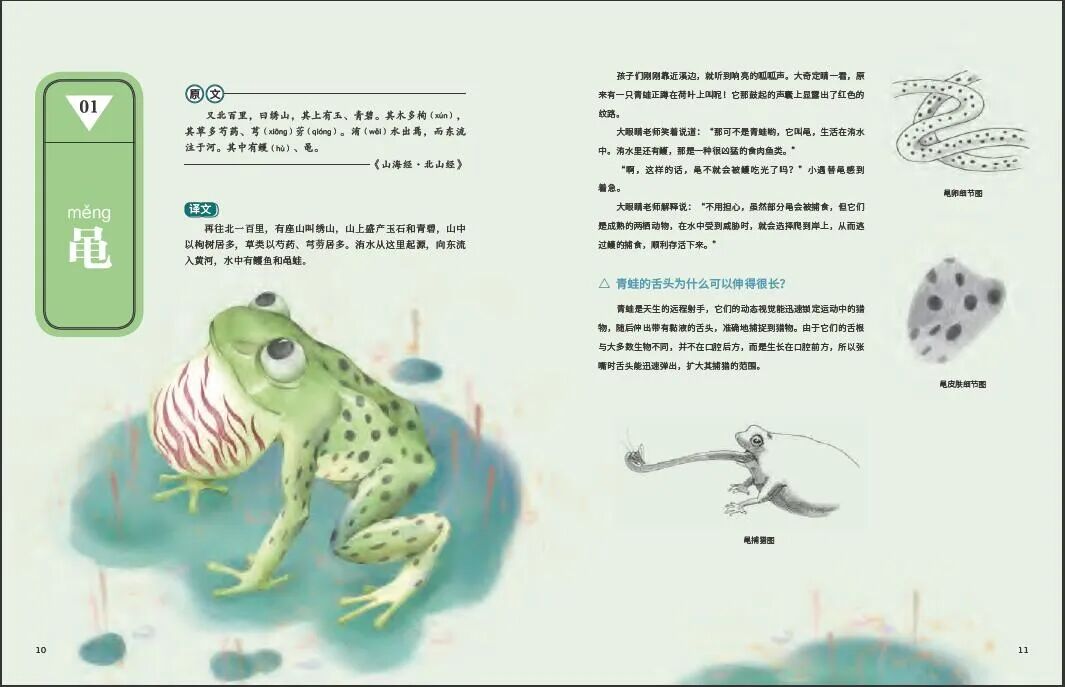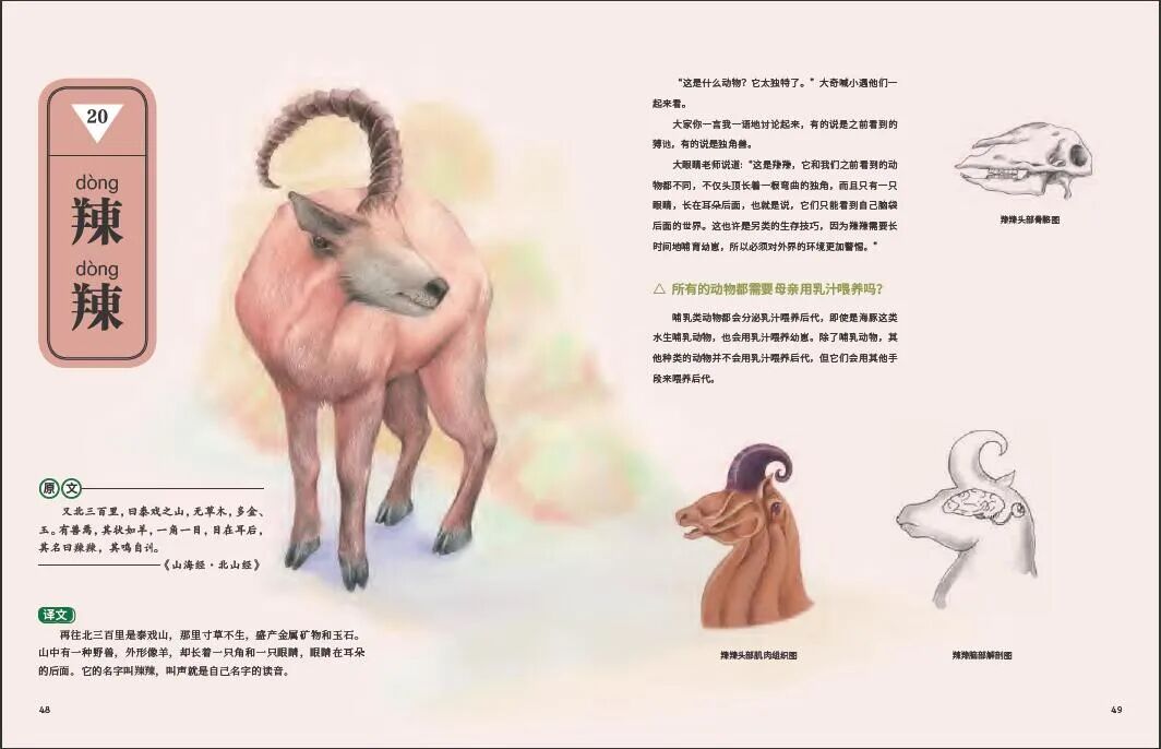 国内首套以现代动物学理论和中国古代五虫纲理论,将《山海经》里的动物细分为毛、鳞、昆、羽、禺、蠃6类。