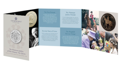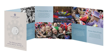 两枚铂金禧年系列的纪念币,都采用了卡册装裱。并用文字和图片,记录了伊丽莎白二世在位期间的重要时刻和成长历程。