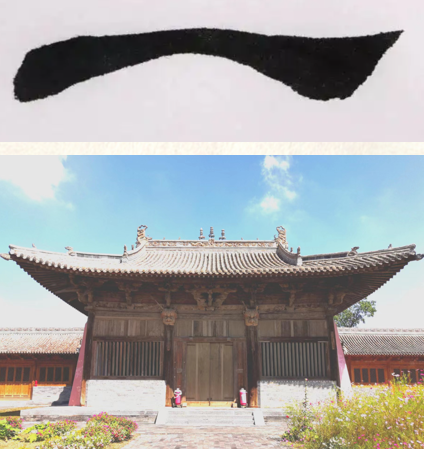 隶书给人的感觉古朴又内敛,不像楷书那样法度森严,也不像行草书那样性格外露。很多人的印象里,隶书的美在于“波磔”线条的飞扬流动。当运笔到达水平线的中间时,笔锋下按,越来越重,再慢慢挑起,向右上出锋,最终形成如同东方古建筑的飞檐结构,给原本平正的字势增添了生动的趣味。