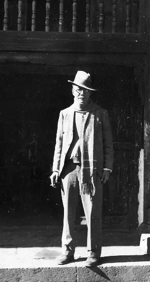 朱自清先生有一阵披着一件云南赶马人穿的蓝色毡子的一口钟。除了体育教员,教授里穿夹克的,好像只有金先生一个人。他的眼神即使是到美国治了后也还是不大好,走起路来有点深一脚浅一脚。他就这样穿着黄夹克,微仰着脑袋,深一脚浅一脚地在联大新校舍的一条土路上走着。