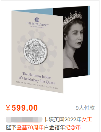 在英女王去世之后,价格更是一路飞涨,高的甚至已经飙升至近600元一枚。