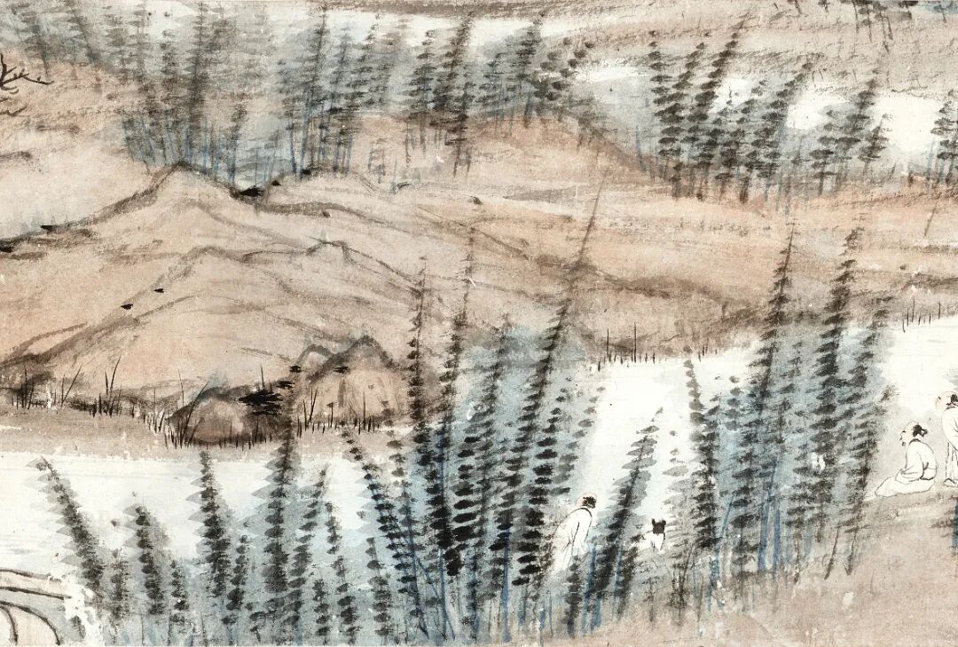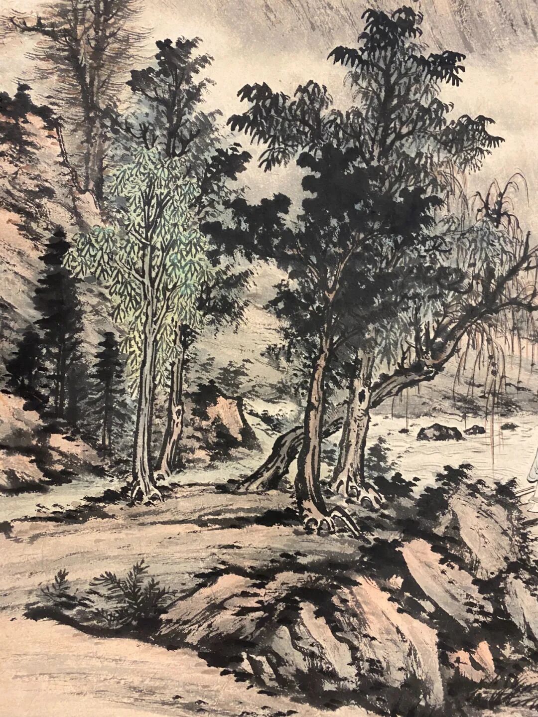 题识:竹溪图为吾友张大千粤游时之作也。清趣超然,不同凡品。琴斋识之。