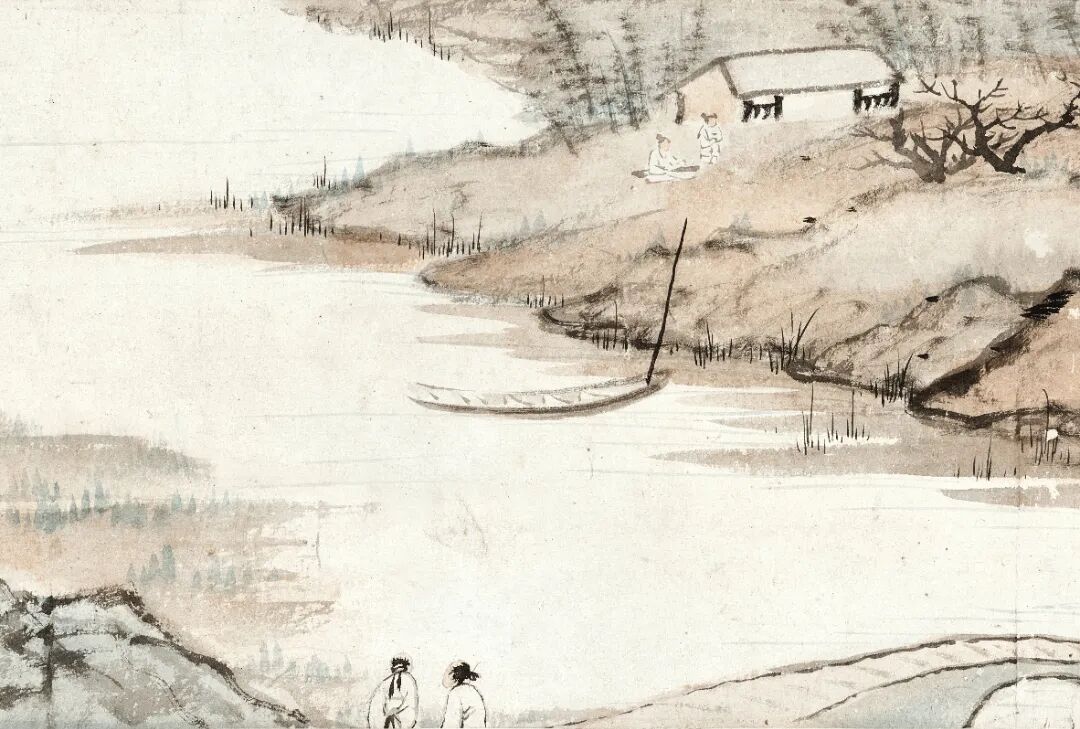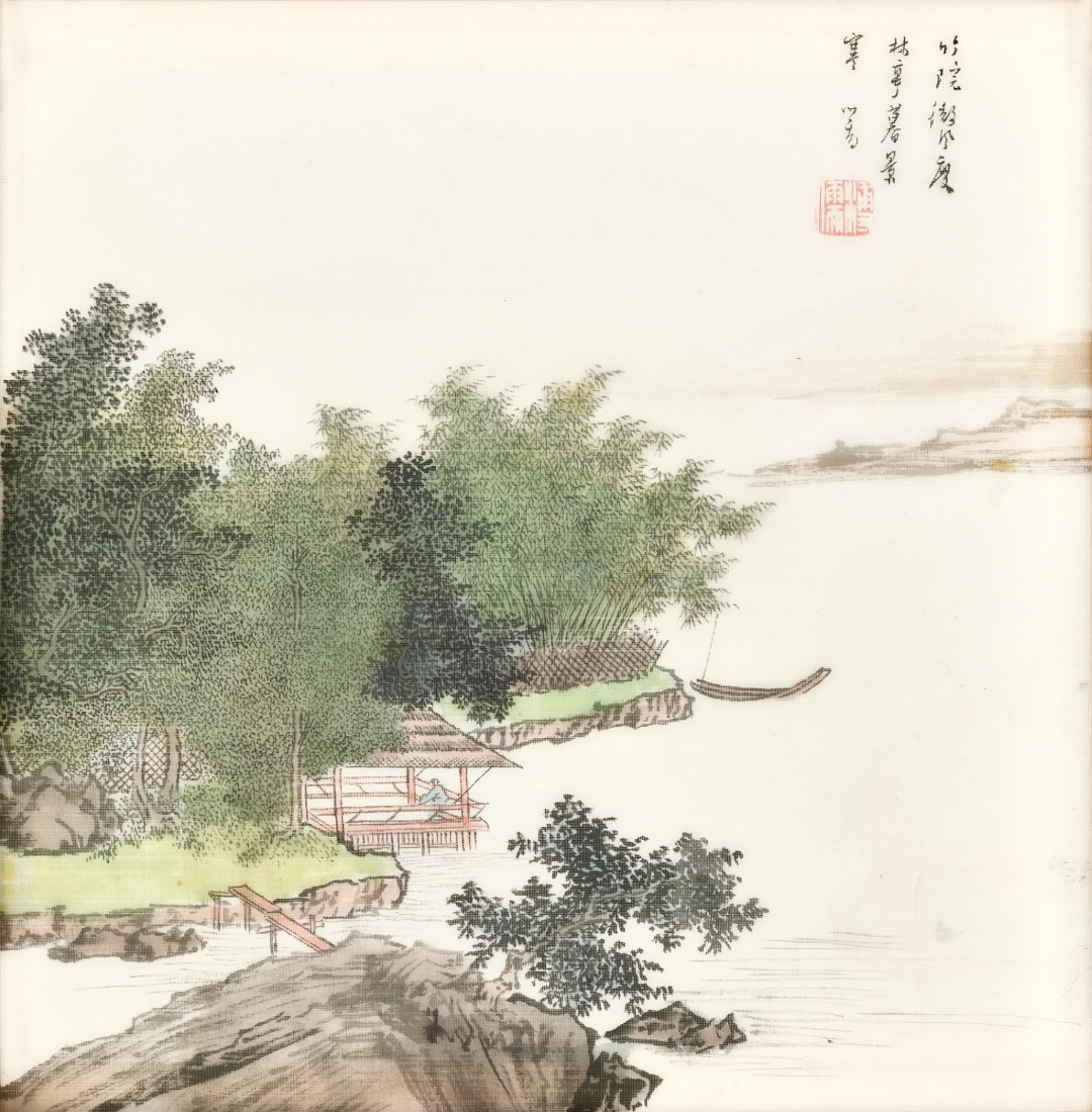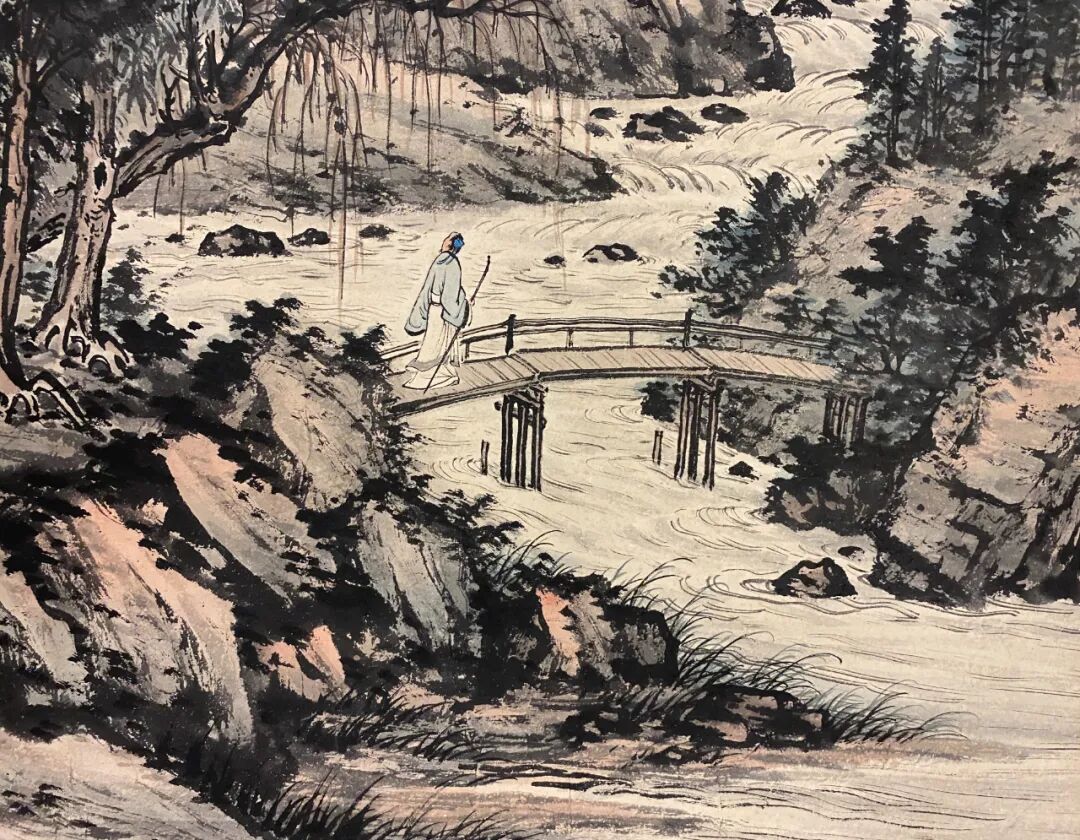 一九五六年,张大千首次踏足欧洲,在法国举行大型个展,时李氏驻日内瓦,或共与画展开幕之盛况,故有工笔人物〈松崖高士〉写赠。往后,画家数度赴欧,不时与李氏伉俪相叙,一九六五年自瑞士返八德园后,又有〈临流清话〉写寄李季琼。上述二幅,于二○○七年由李氏伉俪捐赠加拿大滑铁卢大学之瑞尼森学院。