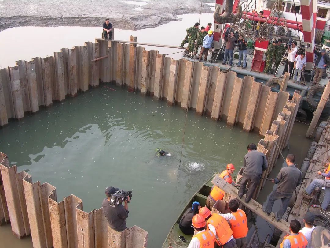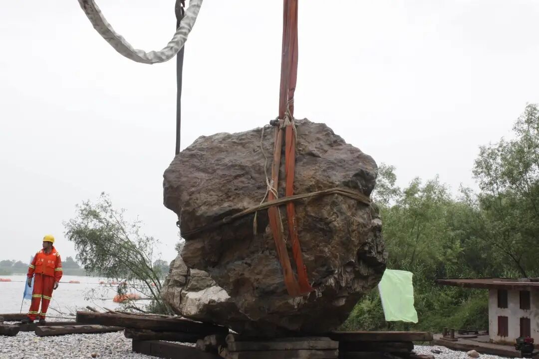 2008年打捞现场 2010年打捞现场 《瘗鹤铭》出水后初拓 纸本立轴 172cm×164.5cm(北京匡时国际拍卖供图) 发现《瘗鹤铭》残石赝拓伪本