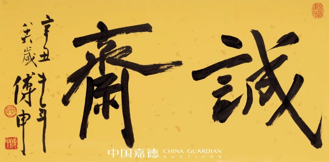 傅申,现为台北故宫博物院指导委员、台湾大学艺术史研究所兼任教授、北京故宫博物院客座研究员、四川张大千研究中心终身顾问。傅申在中国美术史及书画鉴定方面有很深的造诣,对元代黄公望《富春山居图》及唐怀素《自叙帖》的考证堪称经典,在张大千的研究及鉴定方面更是成就斐然。本次拍卖精选推出傅申晚年题斋额书法作品三十件,呈现傅先生全面的文化修养和深厚的书法功底。