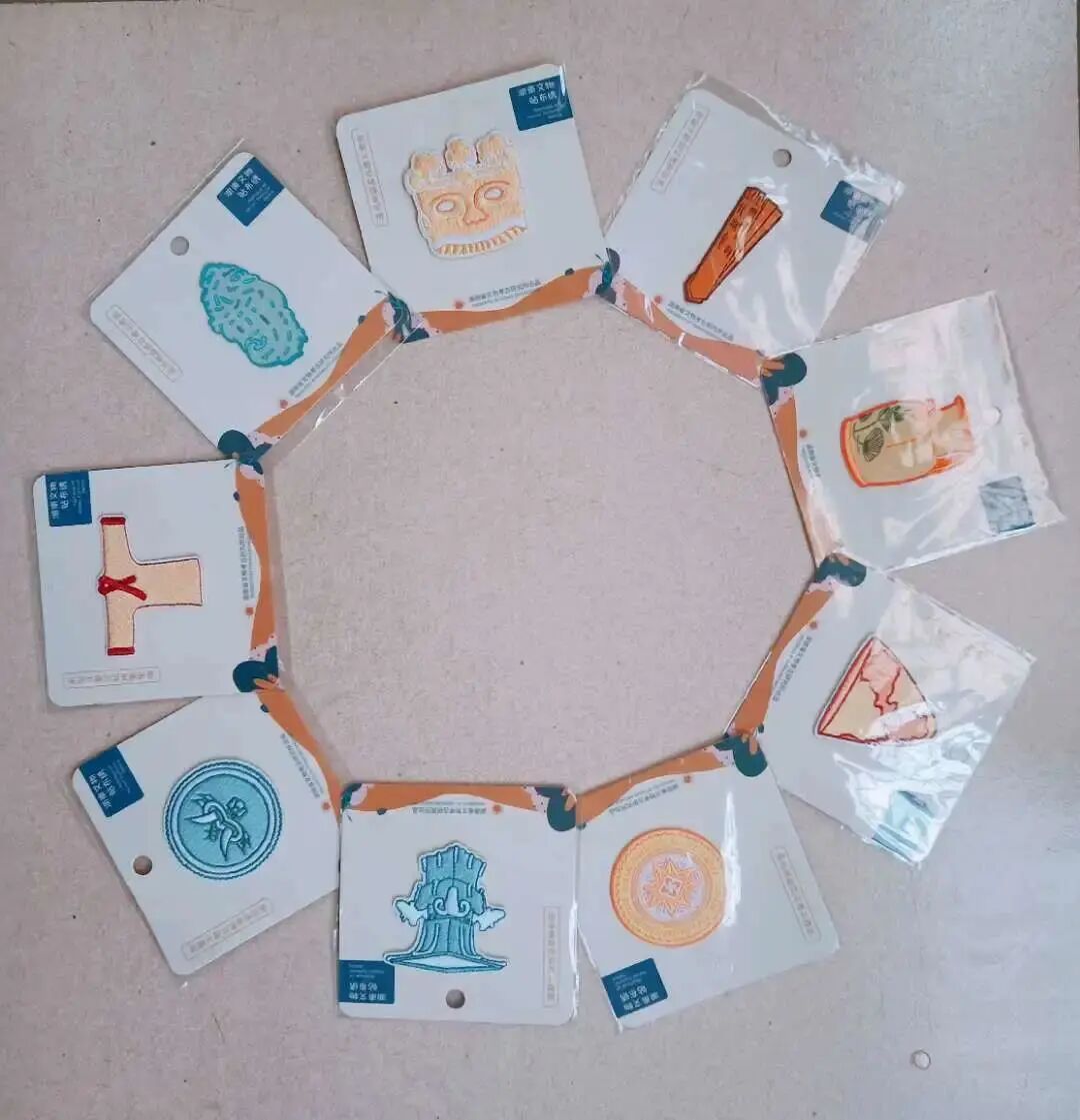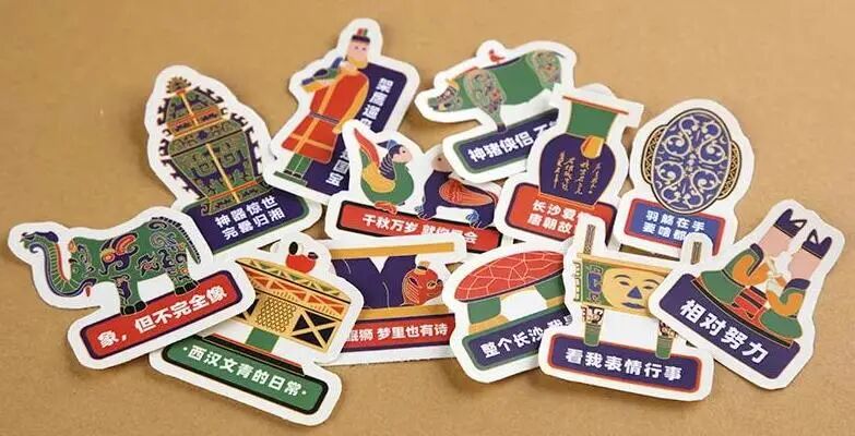 本套布贴根据湖南出土代表性文物及纹饰设计而成,其中文物有素纱襌衣、大禾鼎、滑石面具、里耶秦简、四羊方尊、长沙窑瓷器等等,共10款样式。