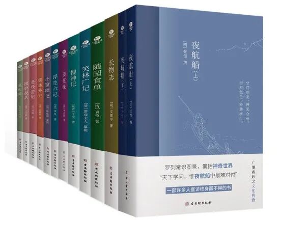 这套中国古典文学雅读经典典藏装(全12种,13册),包含了上文提及的《菜根谭》《小窗幽记》《围炉夜话》《浮生六记》《老残游记》《搜神记》《笑林广记》《儒林外史》《镜花缘》《长物志》《随园食单》《夜航船》(上下册)12种。就如同阅读是一座随身携带的避难所,也是一座小径交错的秘密花园。在这里你可以人生海海中停一停脚步。