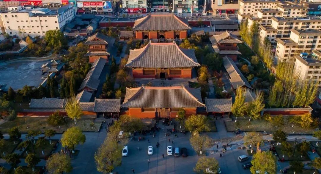 ▲航拍视角的华严寺/来源微博:影像视觉杨