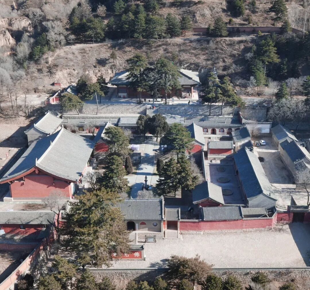 ▲佛光寺建筑全景,东大殿为最上方两颗古松遮挡的建筑,使得大殿隐于山林之间,难见真容| 摄影师@杨国军