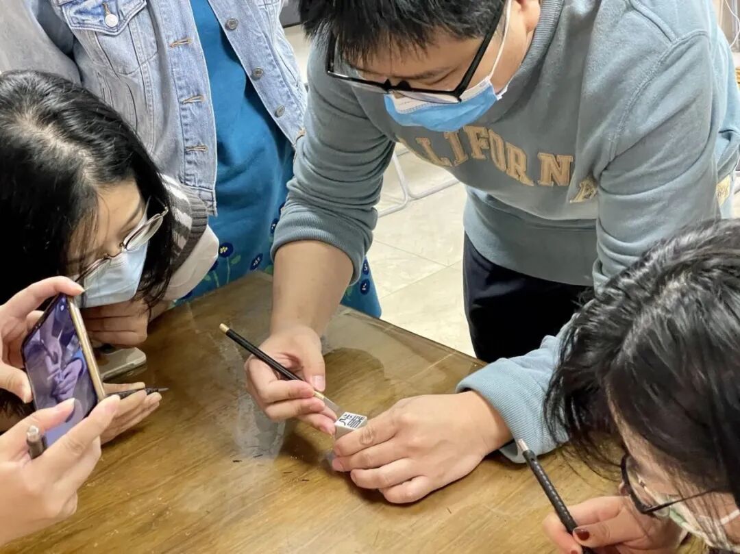 本次海派篆刻工作坊首先引领参与者通过特展展品厘清海派篆刻的源流,赏析艺术大师的代表作,随后以特展作品为灵感,指导参与者学习了篆书上石,朱文、白文的基本刻法,完成了一方属于自己的作品。