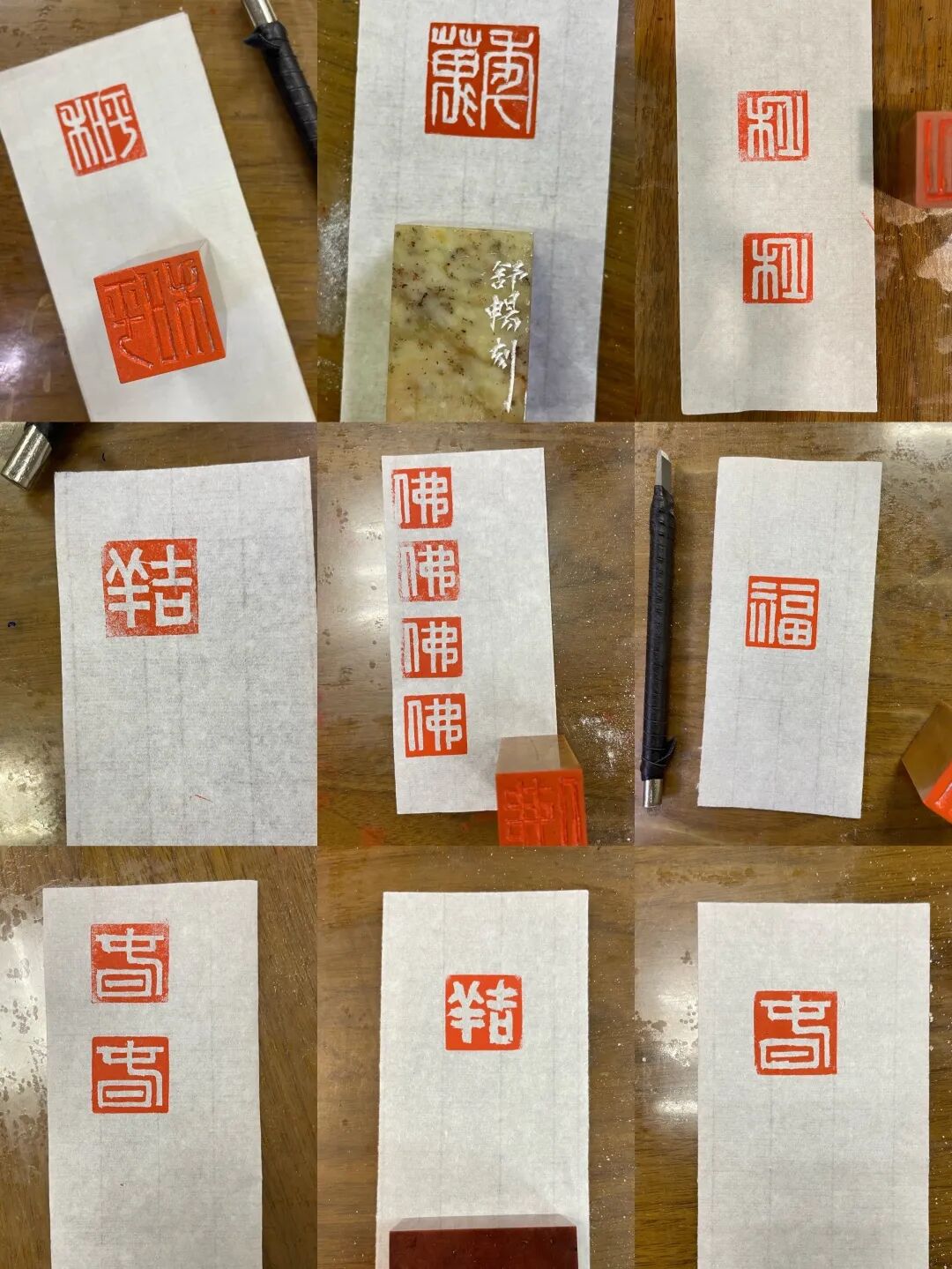 可择青田、巴林、寿山、昌化等印章石材,以粗砂纸打磨平整,再以细砂纸研磨光洁,备用。