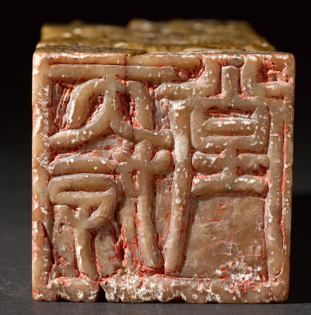 以刻刀刻去笔墨书写的字迹,即构成白文印面。文字笔划凹陷,亦称之为“阴文”。