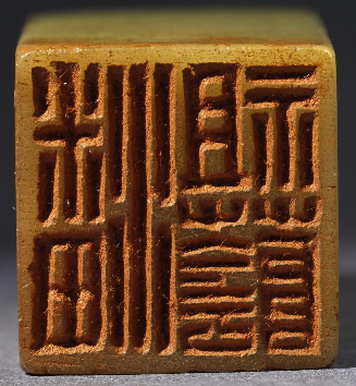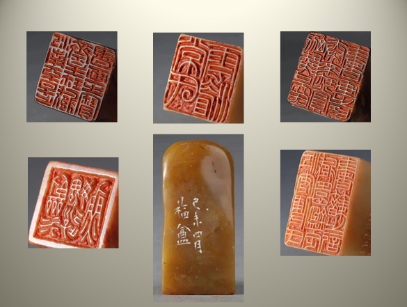 边款的镌刻不拘印面篆刻时间,随时可为,一般用以纪年、记事、所赠之人等,也有刻画梅、兰、竹、菊、山水、人物、佛像等的作品。