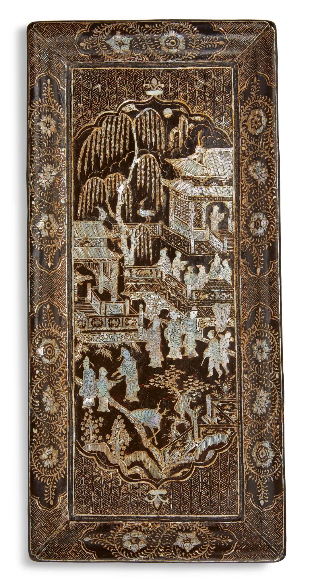 香港艺术馆, 编号20/55 IC 11 (据标签)纽约, 布鲁克林博物馆, “Lacquer: A Panorama of Asian Decorative Arts”, 12月16日1988年-6月14日1989年, 编号TL1988.222.1U. Ramamrutham, 〈Exhibition Highlights: Lacquer: A Panorama of Asian Decorative Arts〉《Orientations》, 卷20, 1989年, 页75, 图3;A. G. Poster, 《Lacquer: A Panorama of Asian Decorative Arts》, 纽约, 12月16日1988年-1989年6月14日