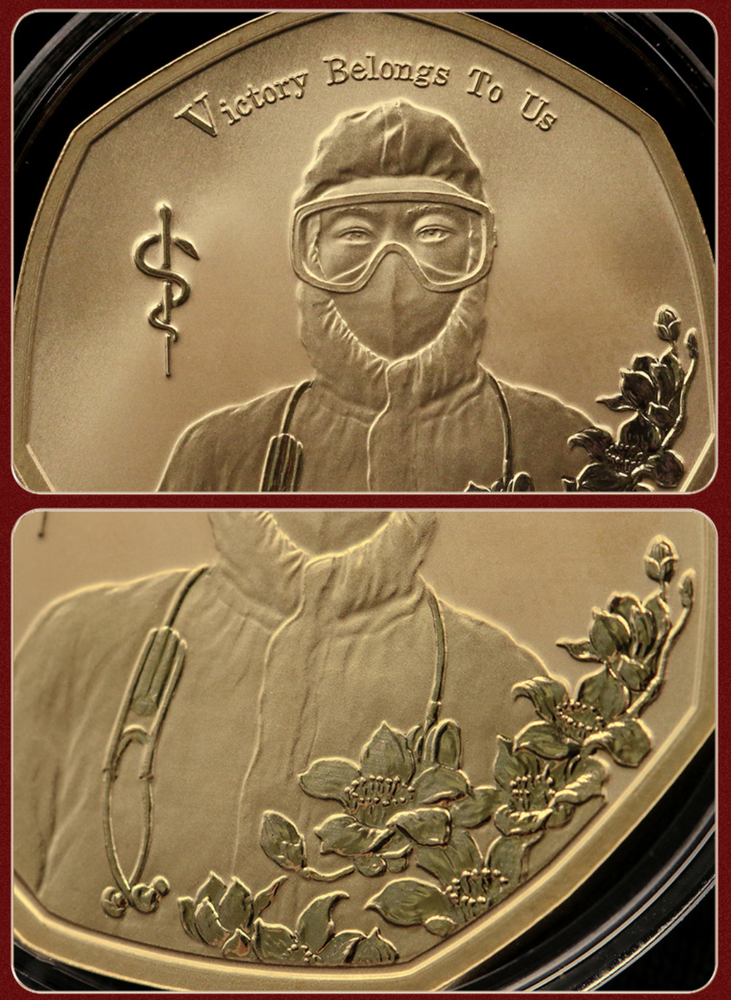 这枚币的发行量只有10万枚。以抗疫题材的火爆程度来说,这个发行量是远远满足不了需求的。