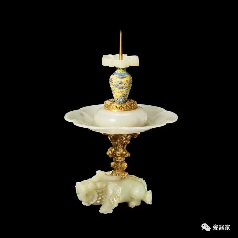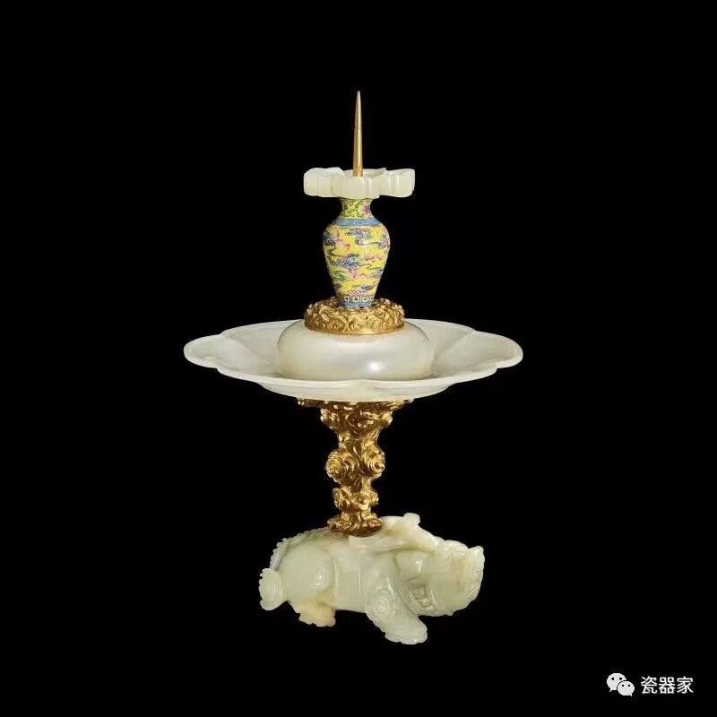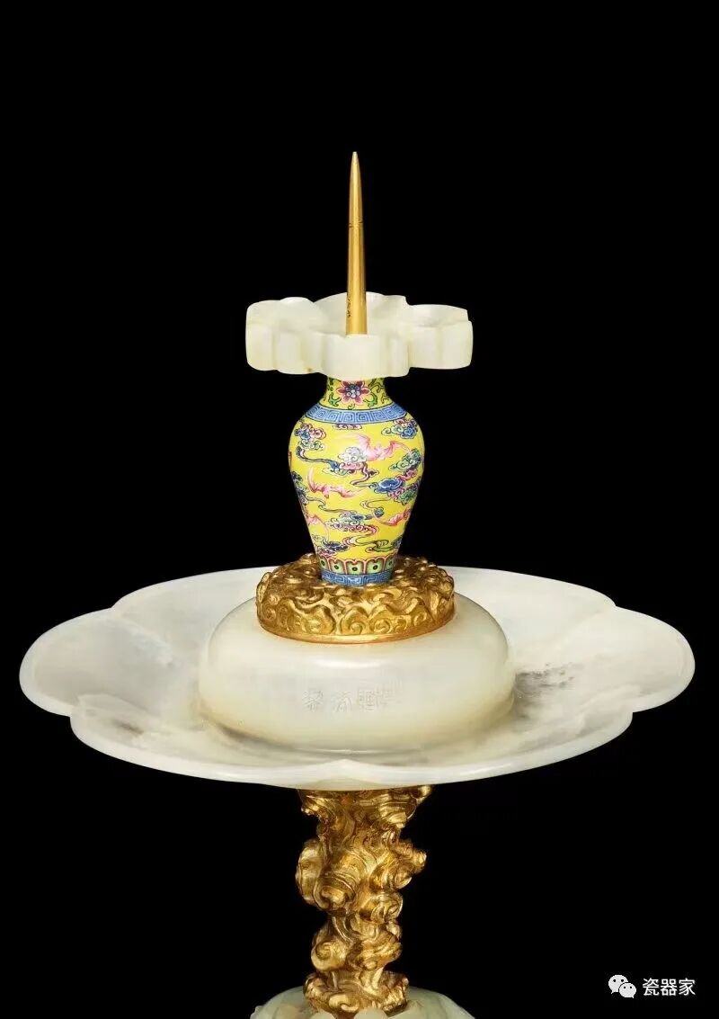 Lot3503清乾隆 御制白玉嵌北京铜胎画珐瑯烛台