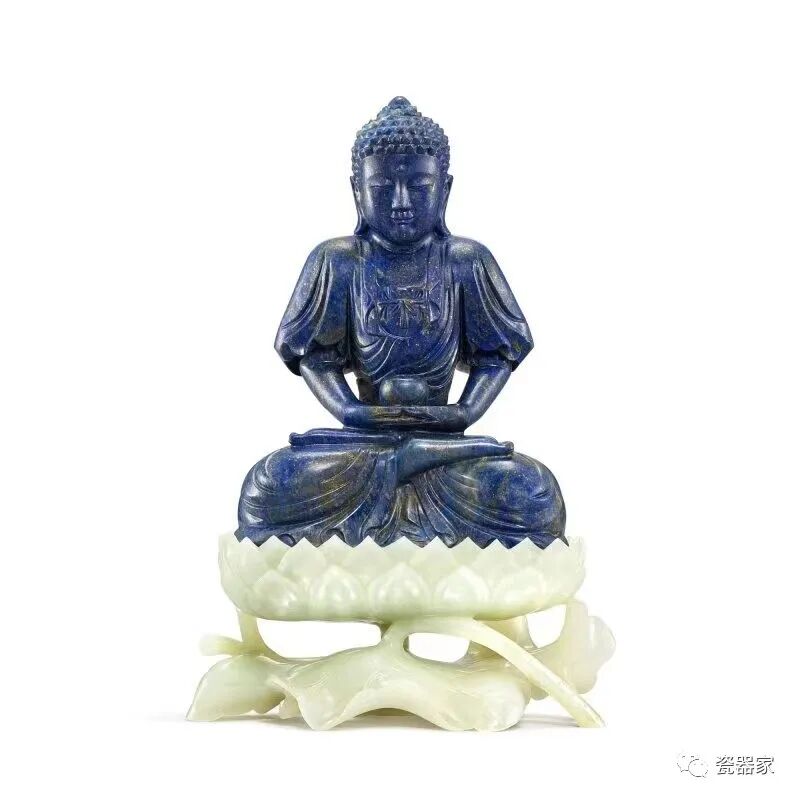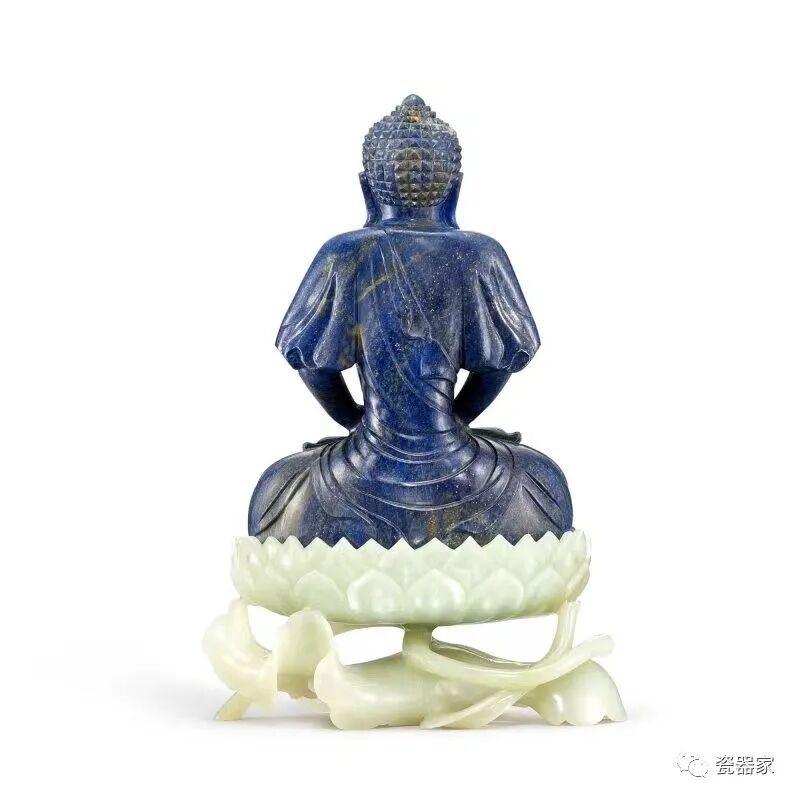 Lot 3506清乾隆 青金石阿弥陀佛坐像连白玉莲座