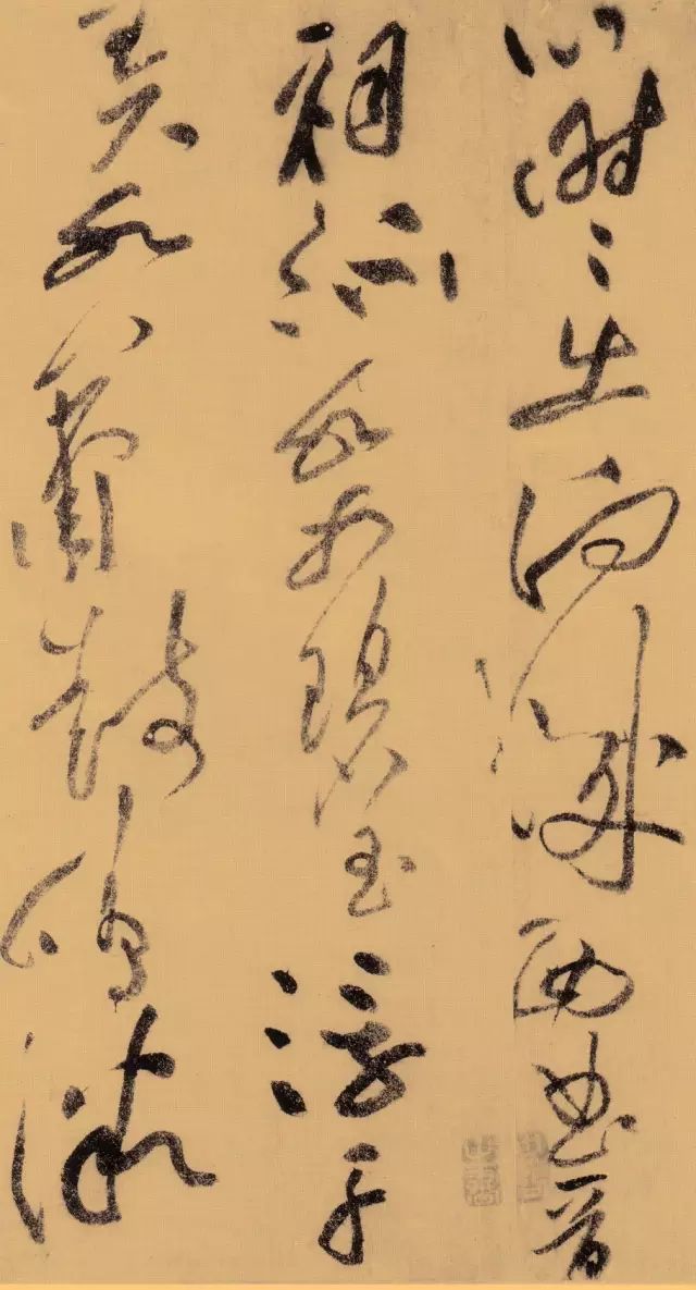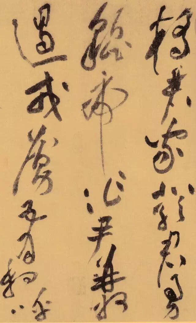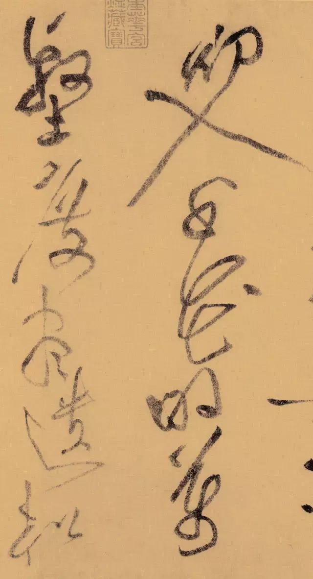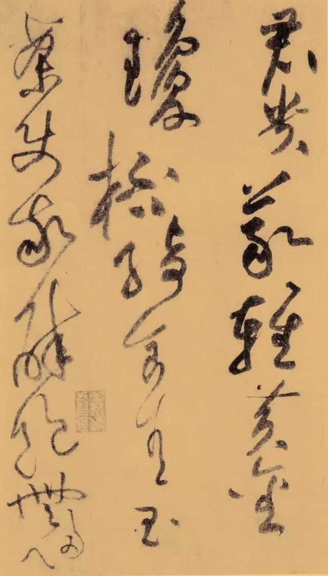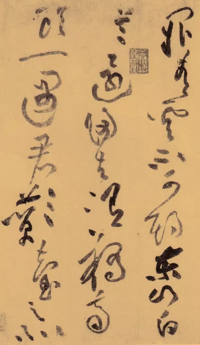 此卷将怀素瘦韧疾速的用笔,变得瘦硬而起伏多变,并将《怀素自叙》上下腾挪开合的行气章法,变得更为紧凑绵密,让布白空间呈现更多,左右摇曳的疏密对比,构成满纸云烟,飞花乱坠的意象。此卷多用“一笔书”,许多整行皆不换笔,卷舒多姿,把李白诗中惯有的豪迈机变空灵欲仙的意境作了倾情演绎。苏东坡讲“不践古人”,与黄庭坚所谓“方近古人”的宗旨是一致的,即非形似古人,而是对古人艺术的精神会合。黄庭坚得见《自叙》后所作草书一变,并非是苏舜钦等人亦步亦趋的描摹怀素,而是“自成一家”的自家面目。【3】{+风}声。银鞍金络到平地,汉东太守来相迎。紫阳【7】我身,我醉横眠枕其股。当筵歌吹凌九霄,星离雨散不【8】终朝,分飞楚关山水遥。余既还山寻故巢,君亦归家渡渭【9】桥。君家严君勇貔虎,作尹并州遏戎虏。五月相呼【10】凌太行,摧轮不道羊肠苦。行来北京岁月深,感【11】君贵义轻黄金。琼杯绮食青玉案,使我醉饱无归 关注公众号:古玉虫【12】心。时时出向城西曲,晋祠流水如碧玉。浮舟弄水箫鼓鸣,微【14】过,其若杨花似雪何。红妆欲醉宜斜日,百尺清潭写翠娥。翠娥婵{图片待补:娟初月辉,美人更唱舞罗衣。清风吹歌入空去,歌曲自绕行云飞。此时行乐难再遇,西游因献长杨赋。北}【15】阙青云不可期,东山白首还归去。渭桥南头一遇君,酂台之北【16】又离群。问余别恨知多少,落花春暮争纷纷。心{-?}{-?}{-?}亦不可尽,情
