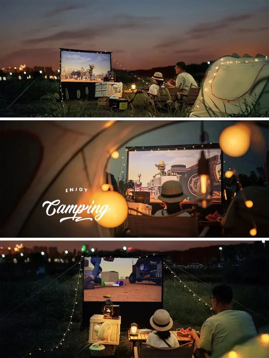 营地露天影院,以天为幕,以地为席