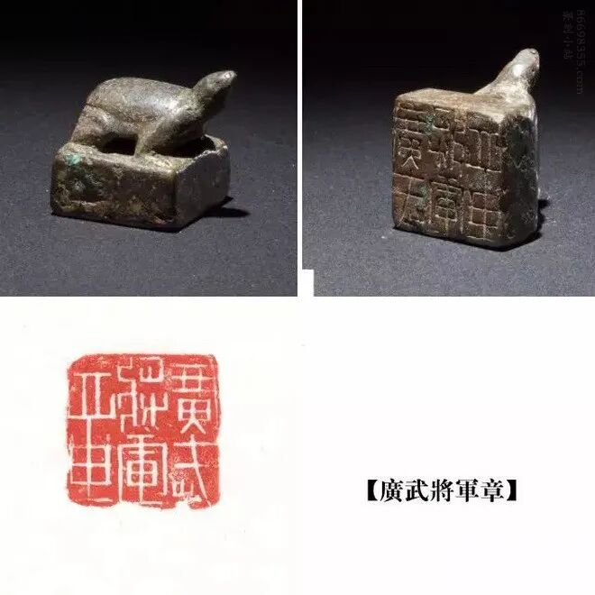 参考书目:《秦汉南北朝官印征存》 罗福颐主编 文物出版社龟钮,印文三行五字,印文为:“广武将军章”,文字狂放率真,极为精美。晋书武帝纪:咸宁五年十月,使广武将军唐彬率巴蜀之卒浮江而下。晋书孝武帝纪:义熙六年五月,内外戒烟,广武将军刘怀默屯建阳门。