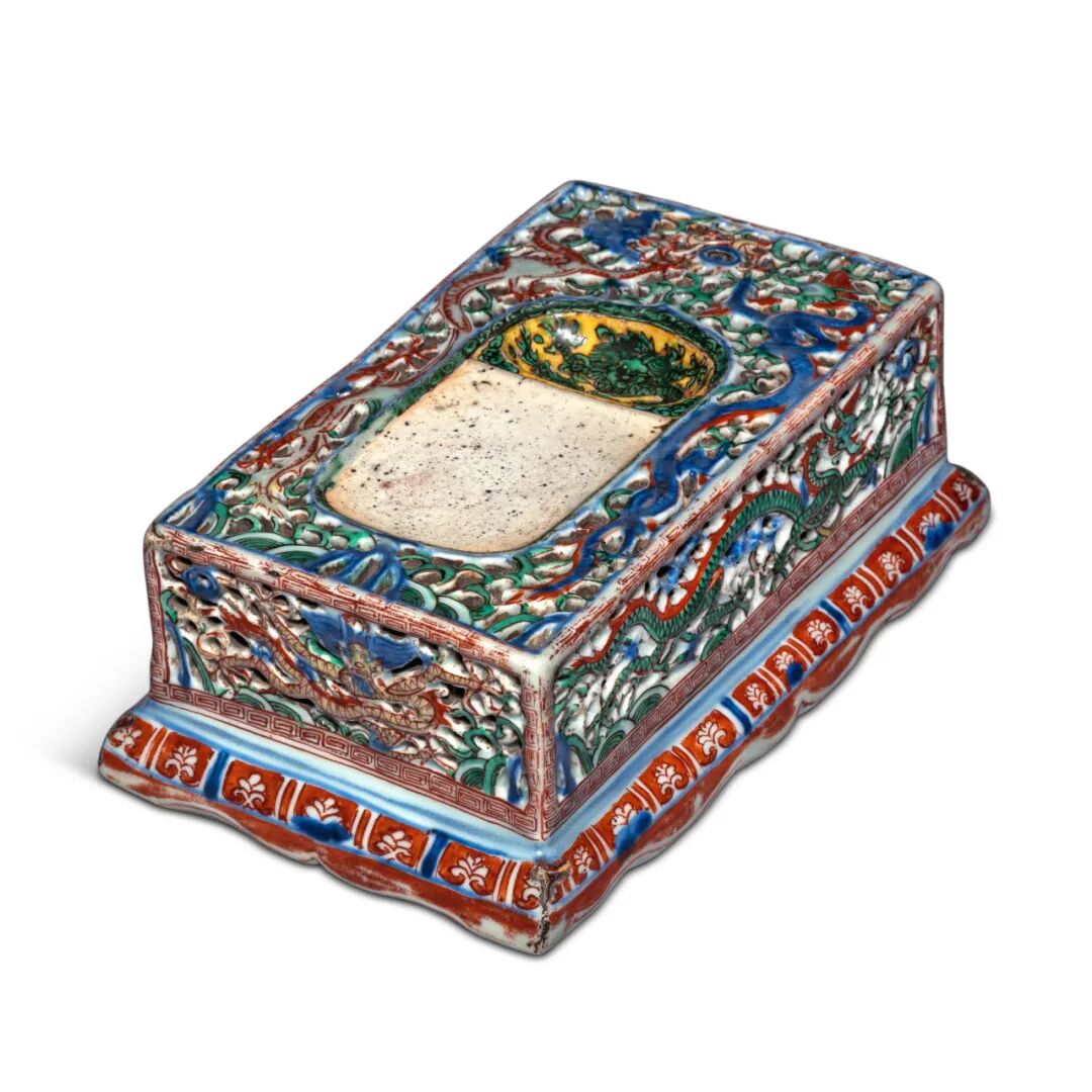 明万历五彩海水龙纹砚