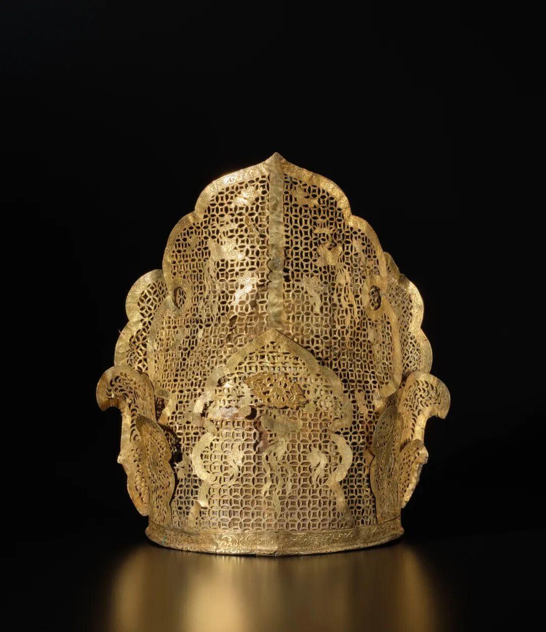 辽银鎏金镂空凤鸟纹冠