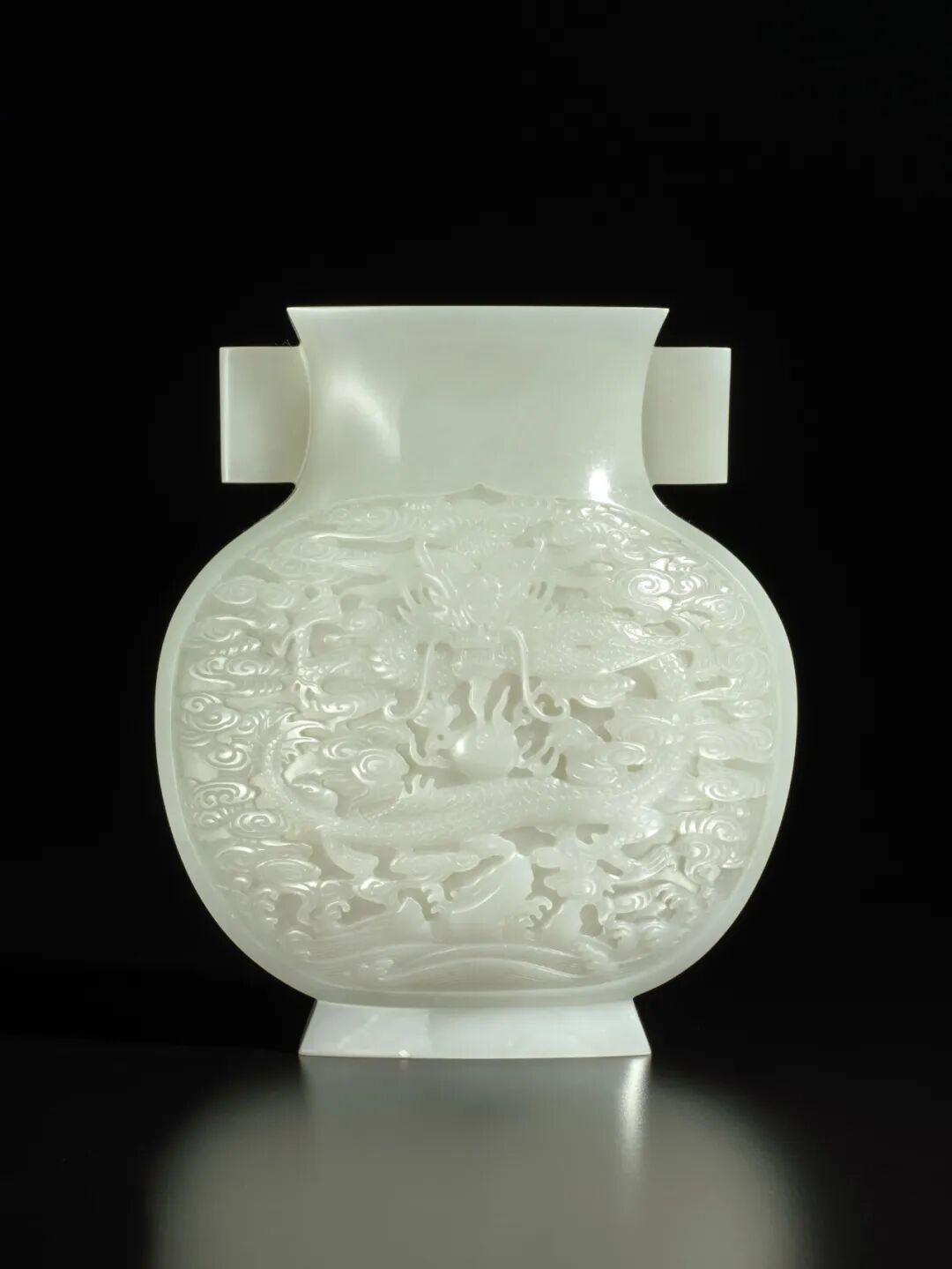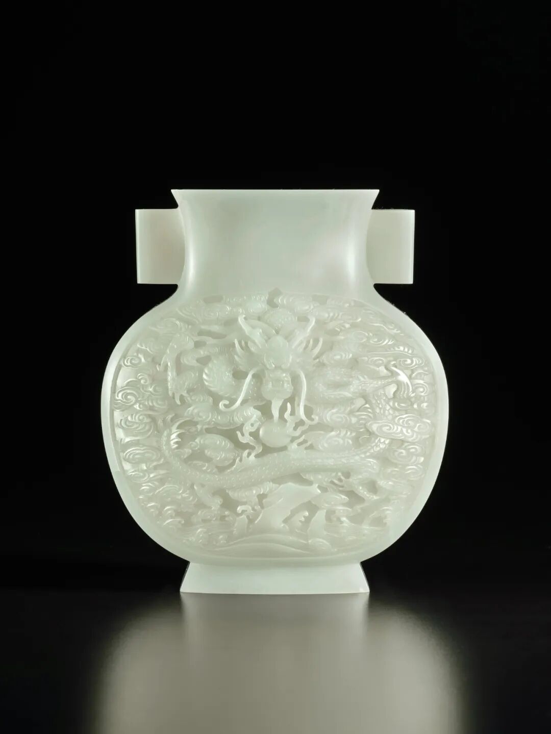 清乾隆白玉雕云龙戏珠纹双耳瓶