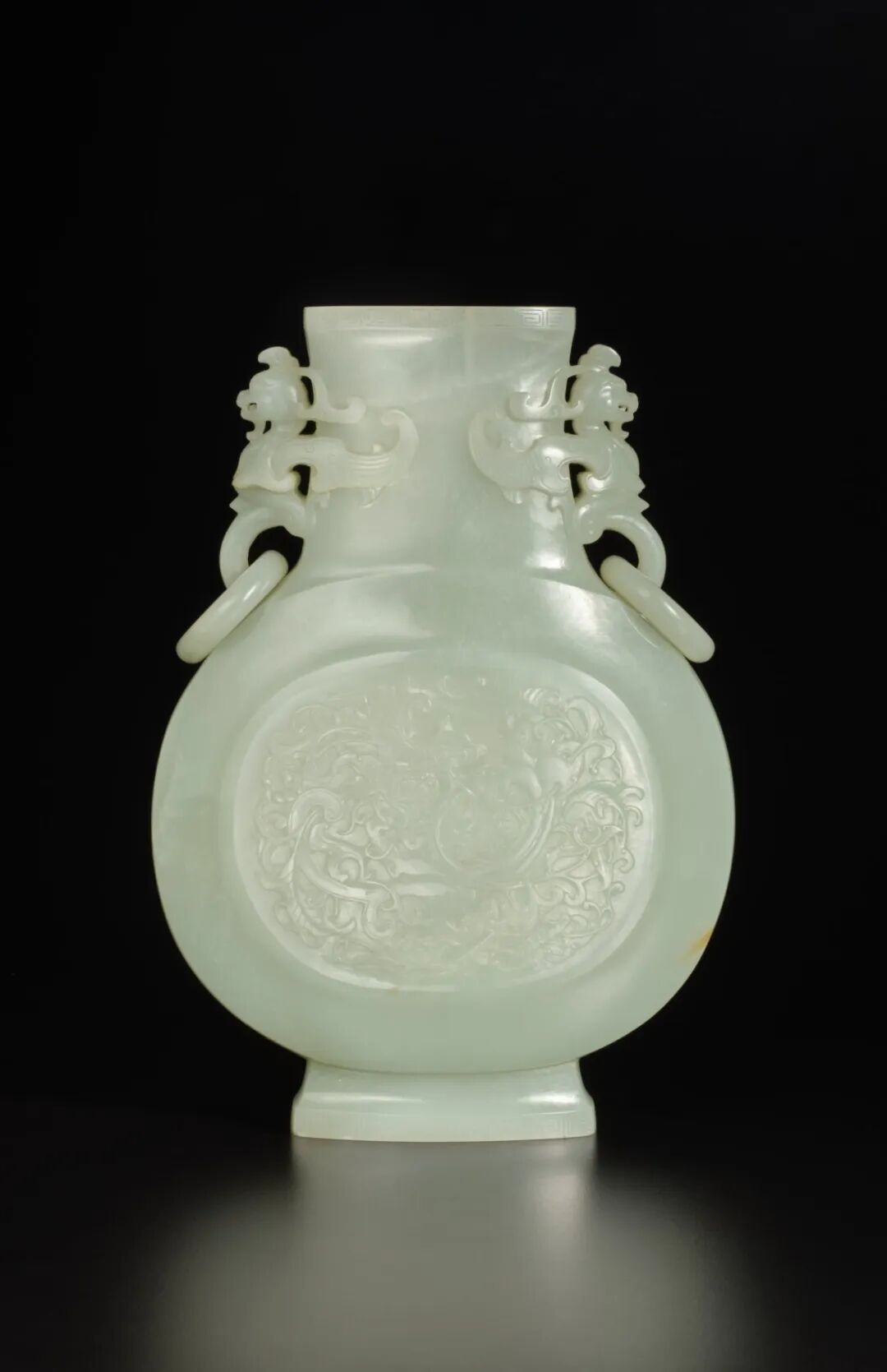 清乾隆青白玉雕穿花龙纹凤耳衔环扁瓶