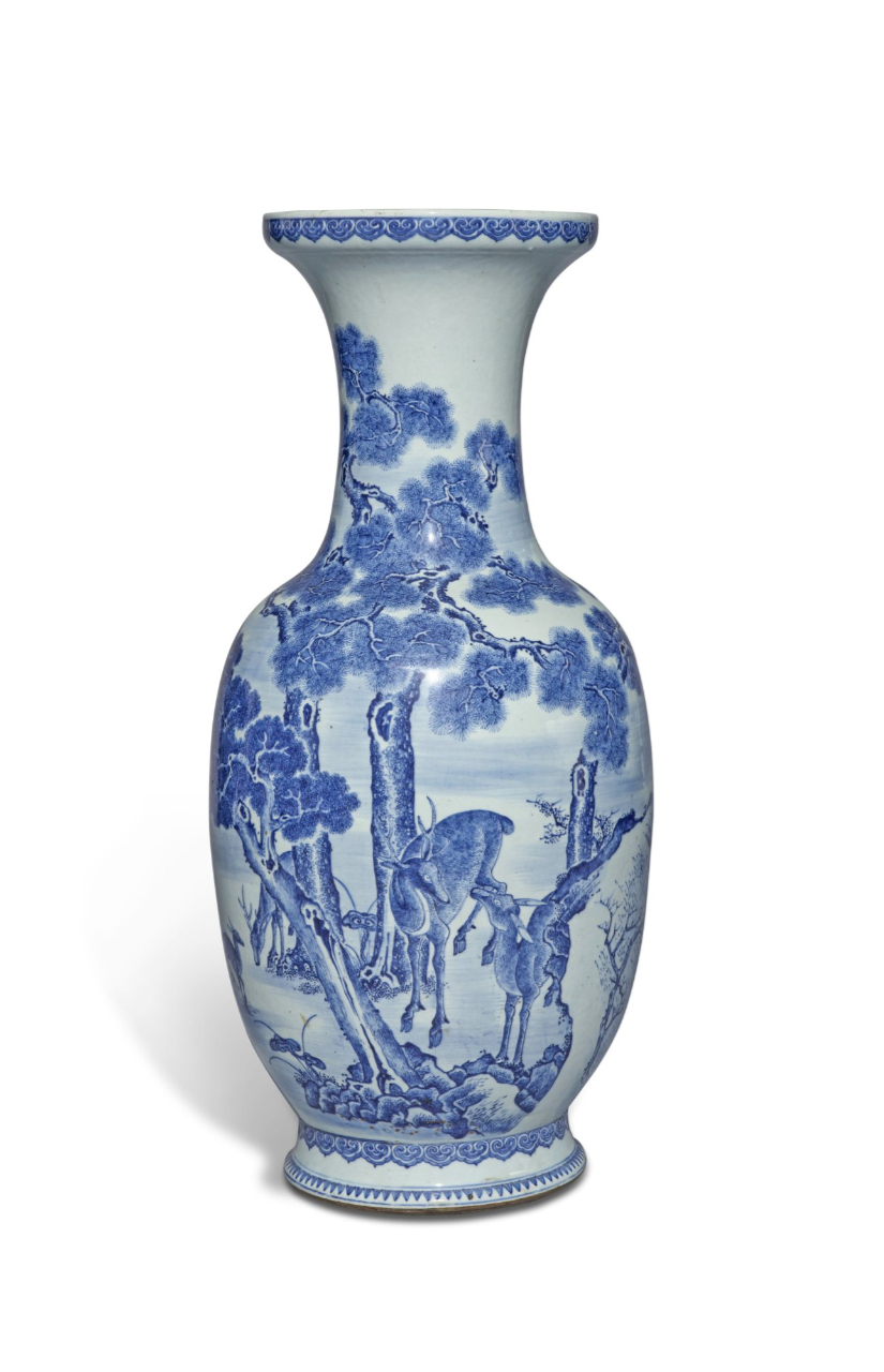 清十八世纪青花松鹿长春图大瓶